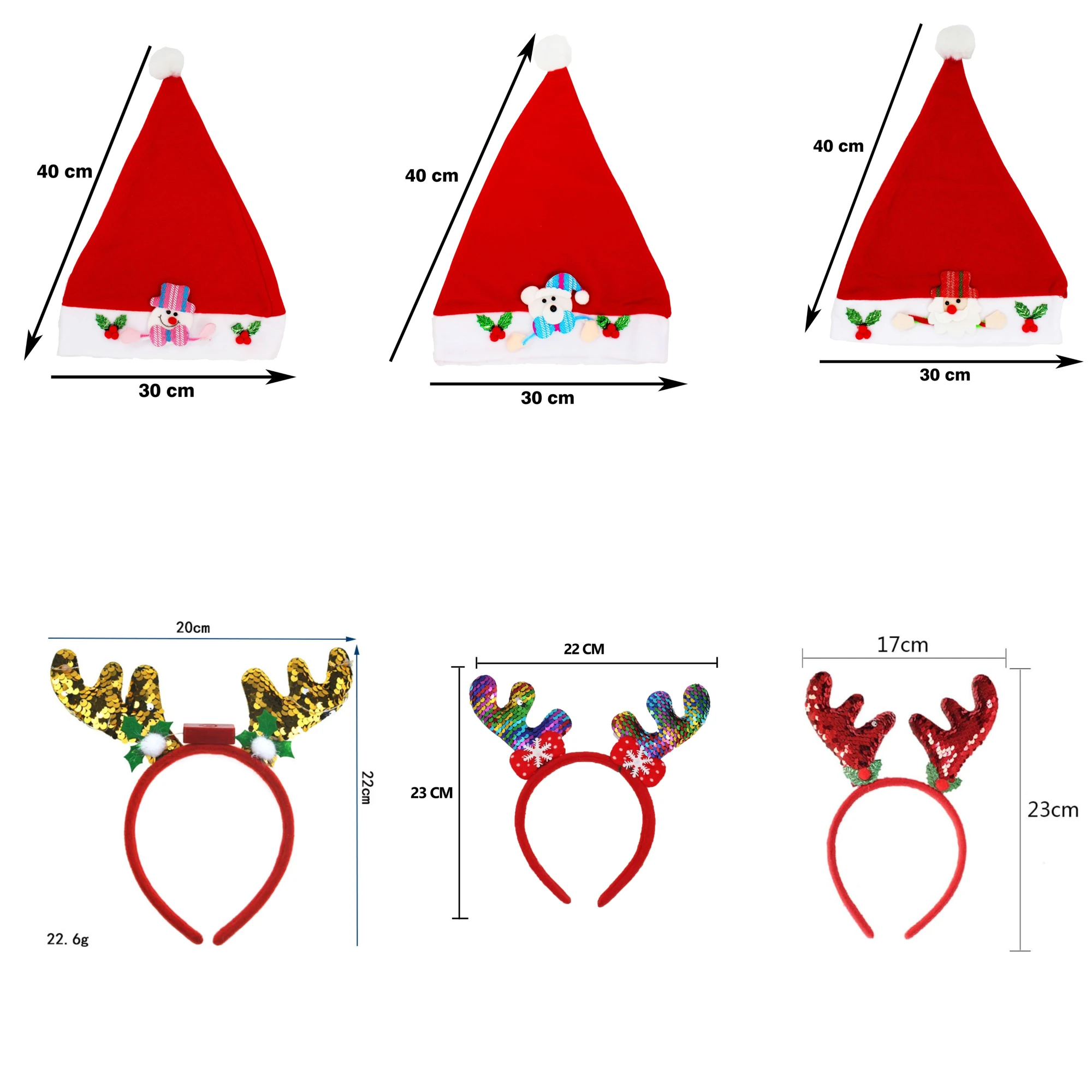 – XMAS CAPS SNOWMAN, SANTA & TEDDY: Adorable hats featuring cheerful designs. Enjoy the festive spirit with a touch of whimsy!