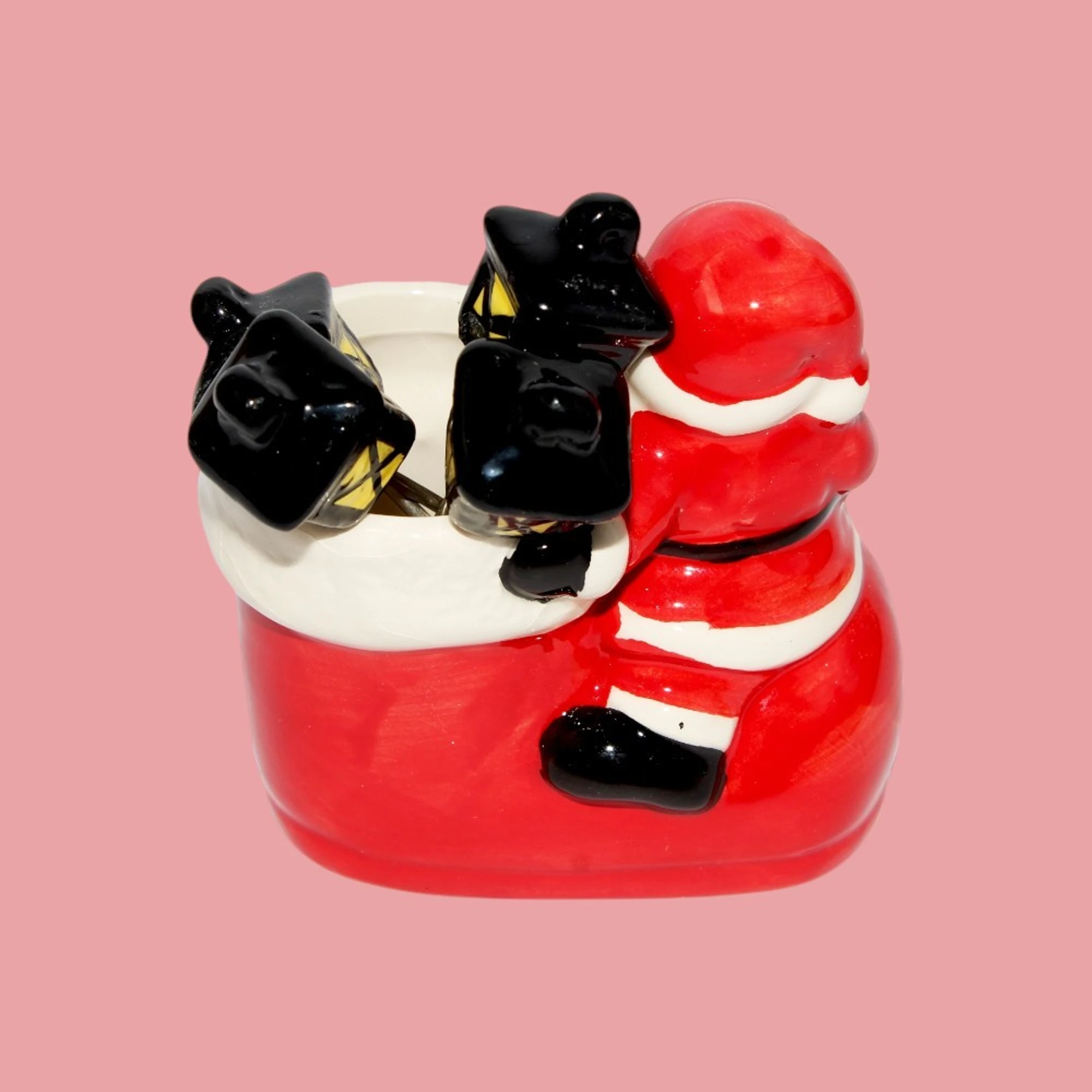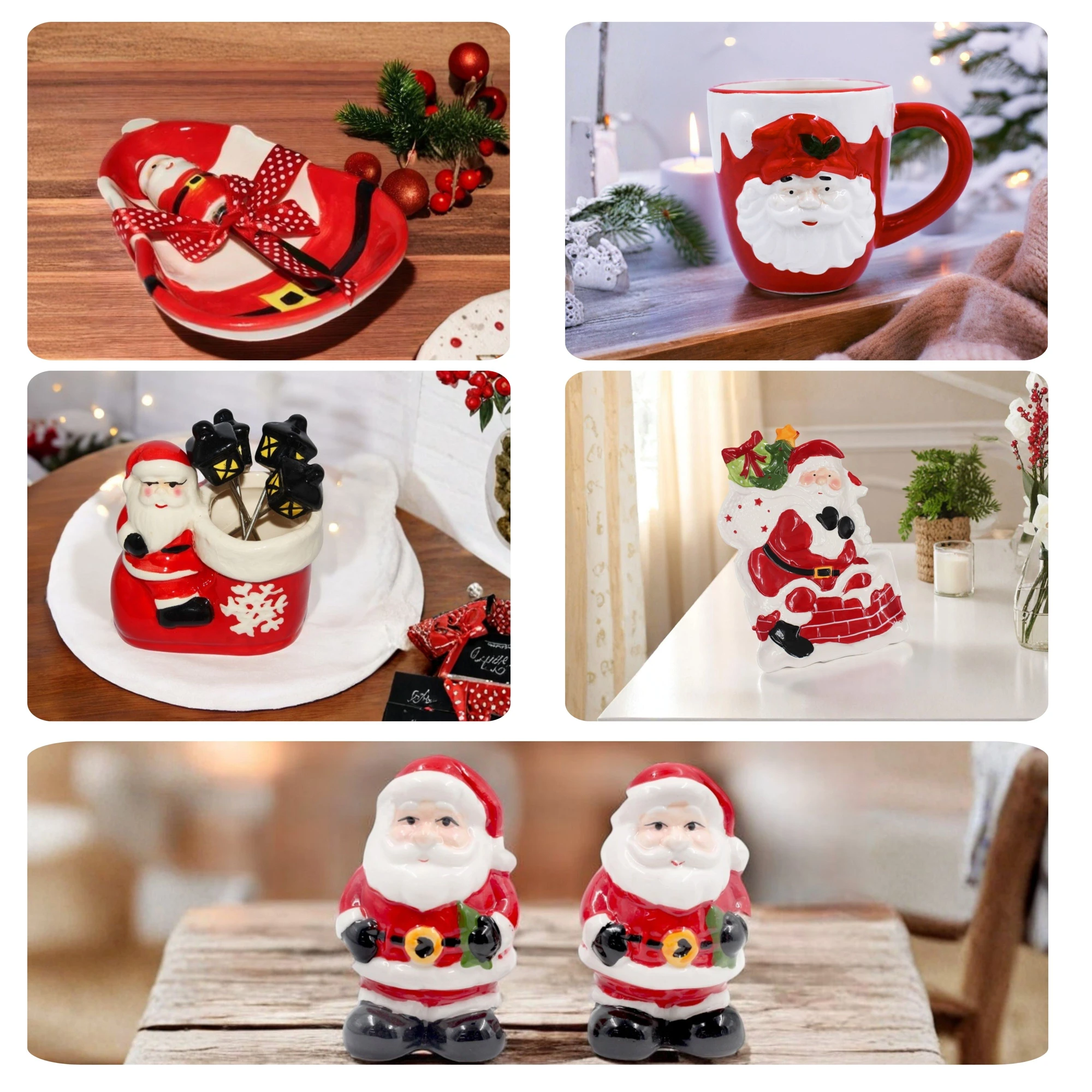 Brighten up your holiday table with this delightful Santa-themed tableware set! Perfect for any festive gathering, this set includes a charming Santa on Chimney Serving Tray to display your treats beautifully and a pair of Santa Snowman Black Hat Salt and Pepper Shakers to add a playful touch to your holiday meals.