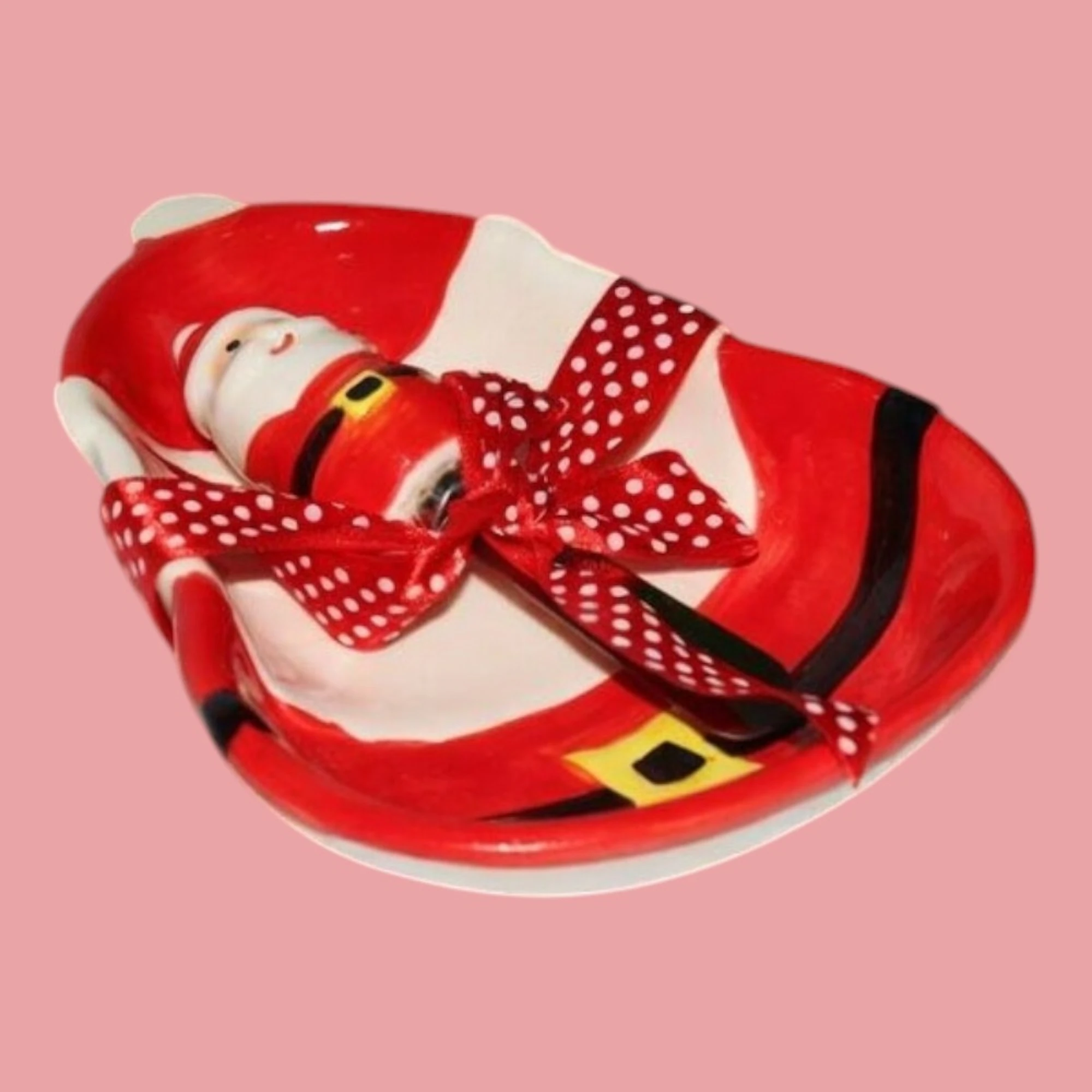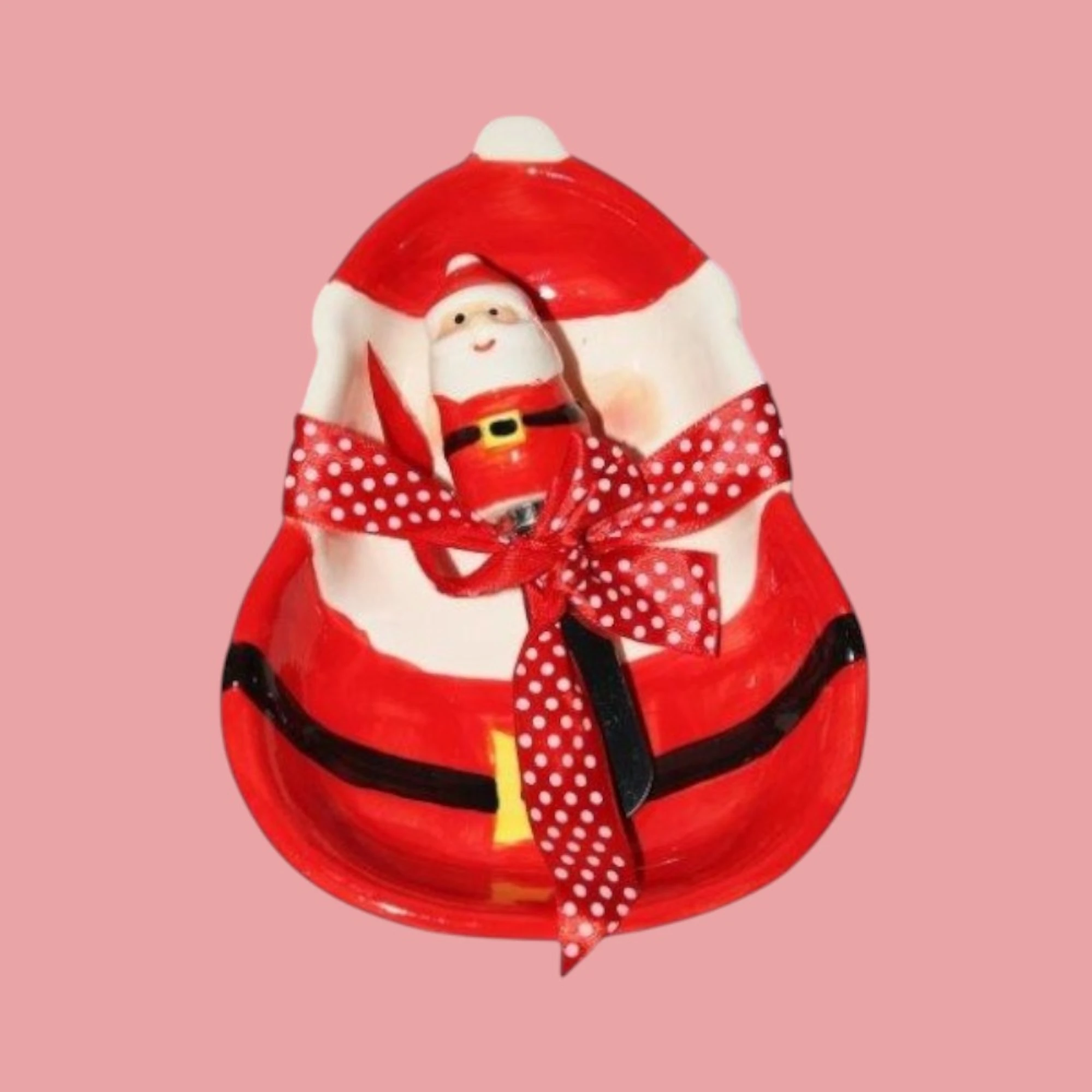 The set also features a Santa Face Red Mug, ideal for sipping your favorite warm drinks by the fire or gifting to loved ones. The Santa Butter Serving Tray with Knife ensures butter or spreads are served in holiday style, making your table settings extra cozy and merry.