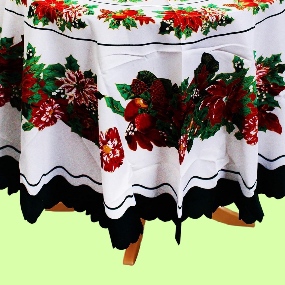 Festive Holiday Tablecloth with Poinsettia and Holly Design