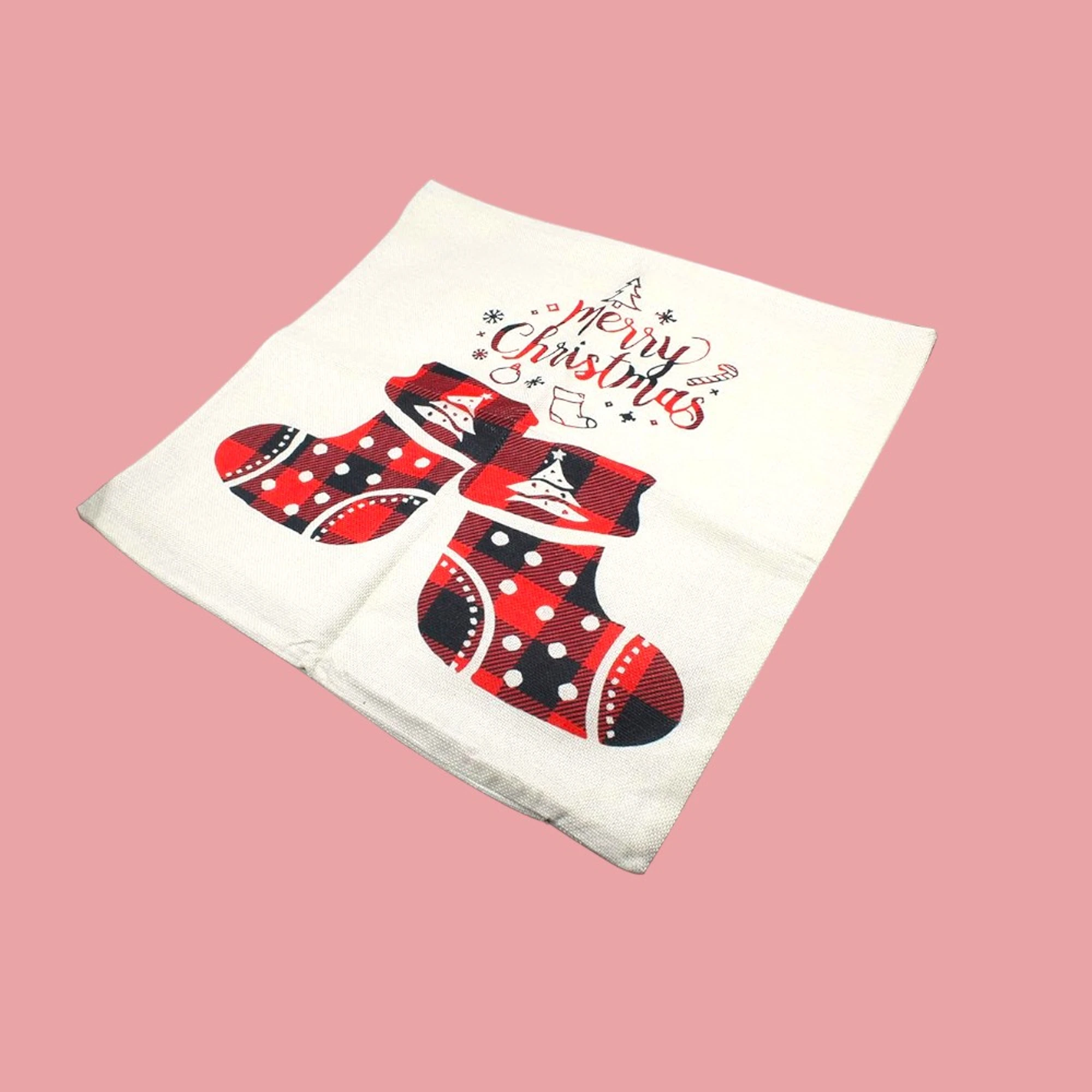 Spruce up your holiday decor with our XMAS Print Jute Cushion Covers. Designed for festive cheer, these covers come in a delightful set of two. Each cushion showcases charming tree and stocking prints, creating a warm, inviting ambiance.
