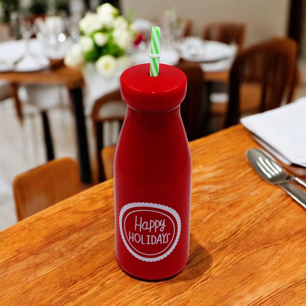 Add a pop of color and a sprinkle of joy to your everyday routine or give it as a gift to someone special. The Sipper Milk Bottle in Happy Holidays Red not only quenches thirst but also adds a touch of charm wherever you take it. Make every sip feel like a celebration!