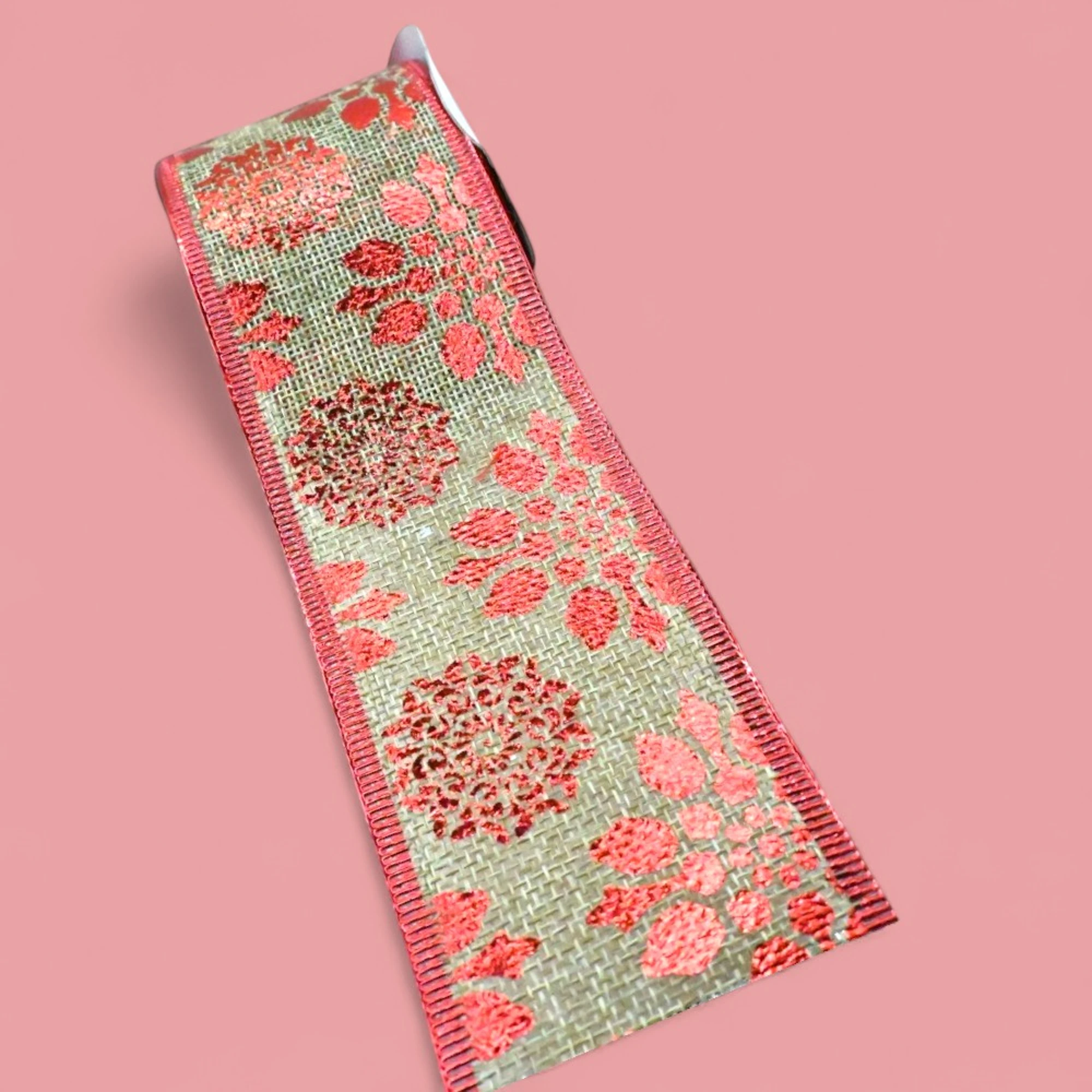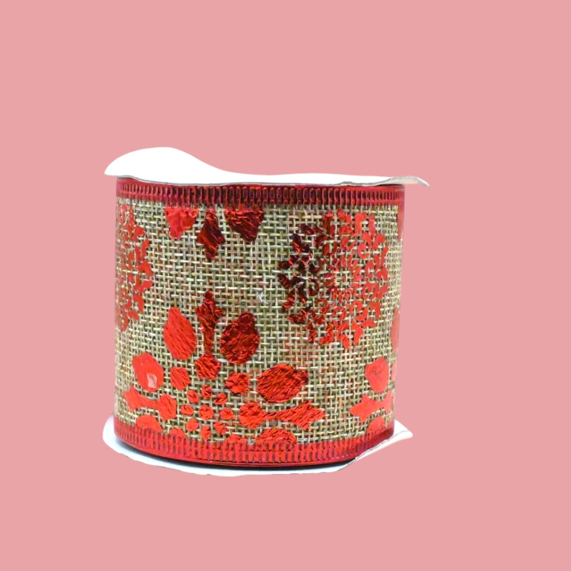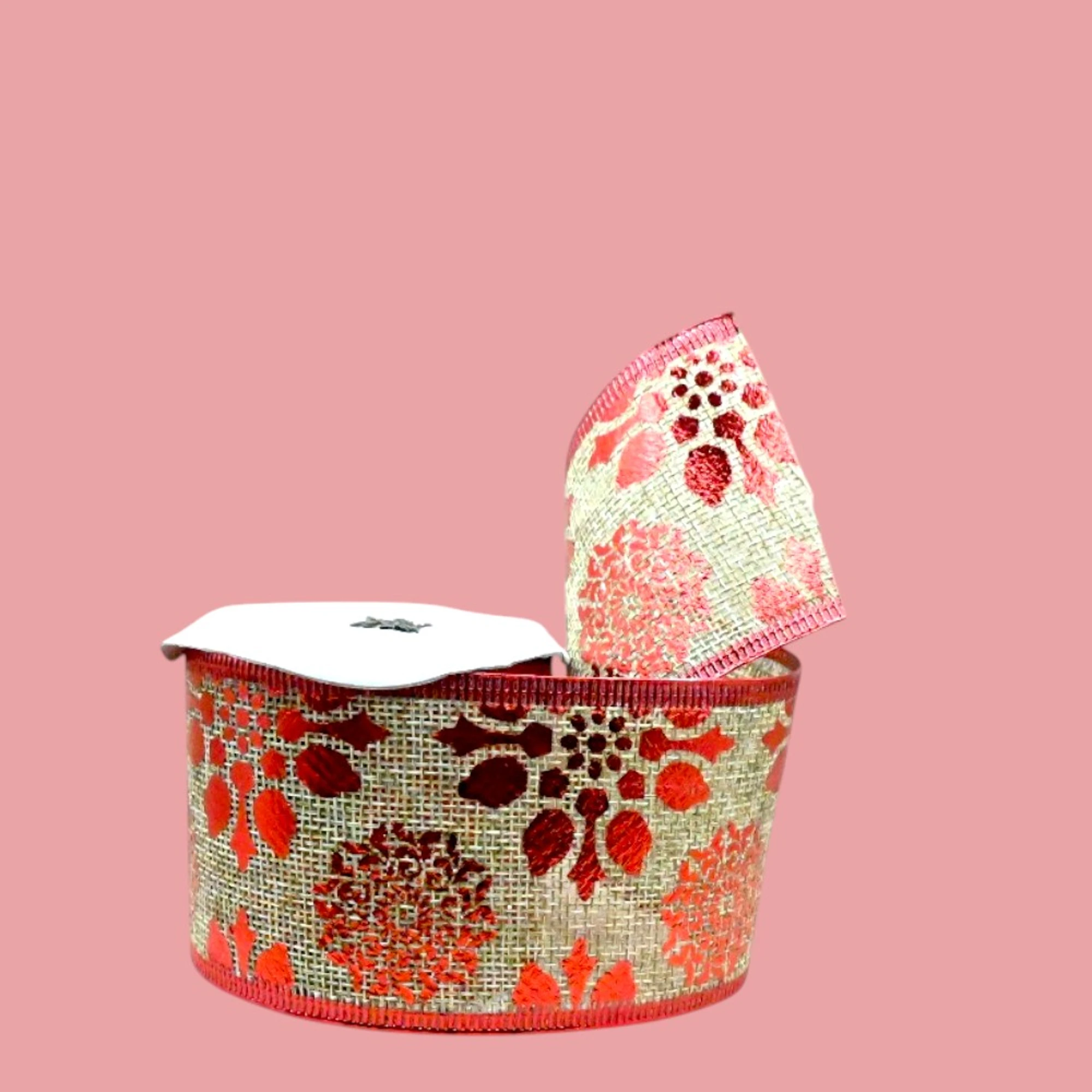 Add a touch of holiday cheer to your Decor with our XMAS Red Jute Gold Holly Leaf Ribbon.