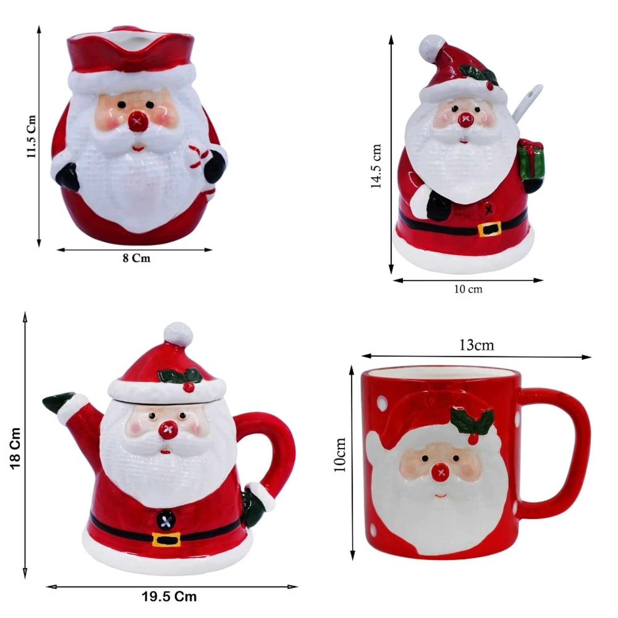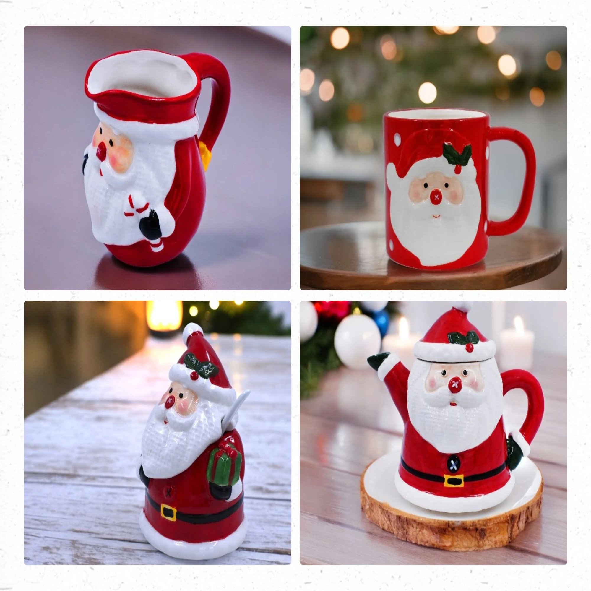 Brighten up your kitchen with this delightful Santa-themed set! Perfect for adding a splash of holiday joy, this set includes a Santa Face Milk Pot, a Santa Sugar Pot, a Santa Kettle, and a Santa Face Mug.