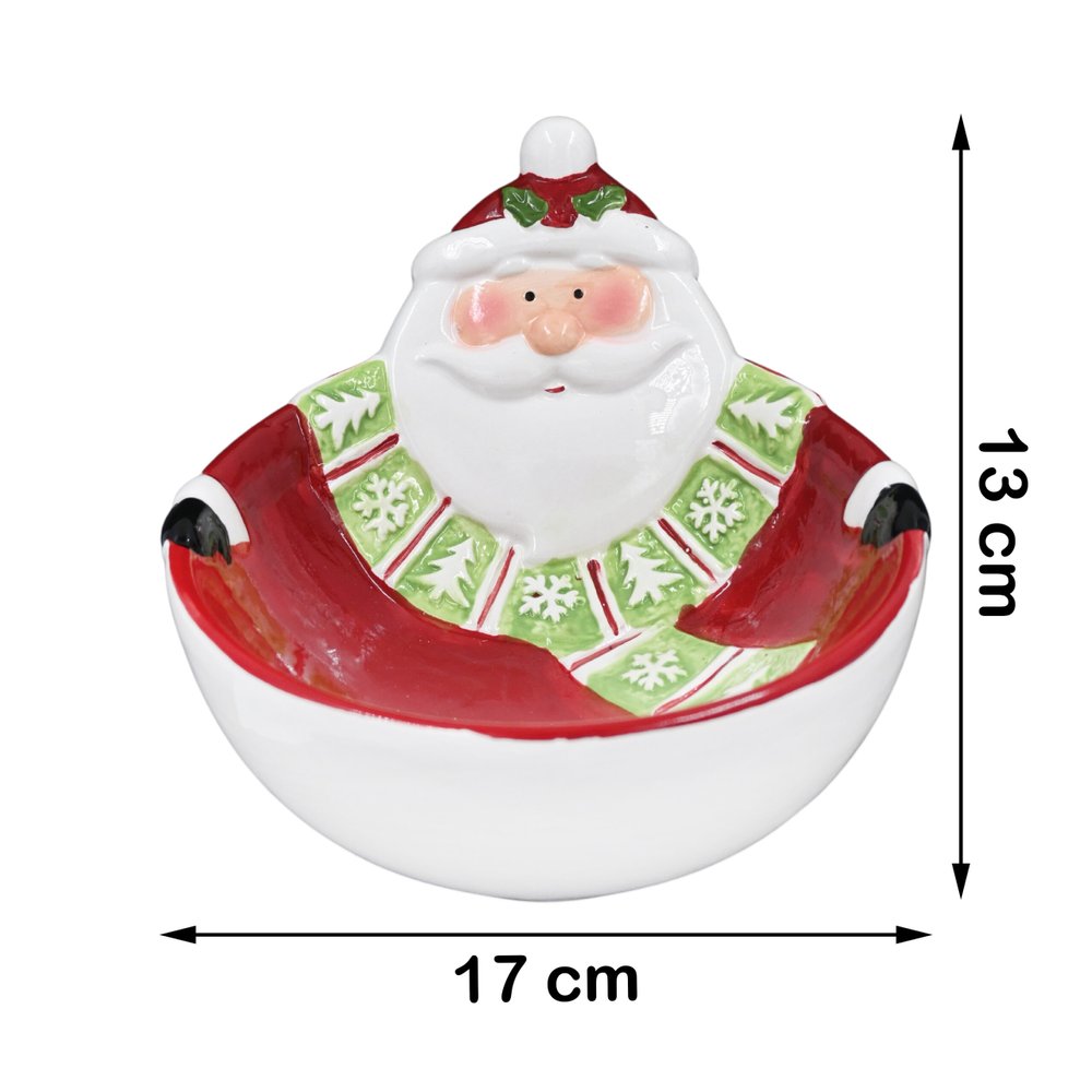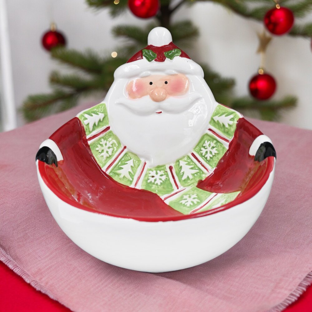 Crafted from high-quality ceramic, this serving bowl is not only durable but delightfully whimsical. Shaped like Santa Claus himself, complete with his iconic red hat and a cozy green scarf, it adds a playful yet elegant touch to your dining set-up.