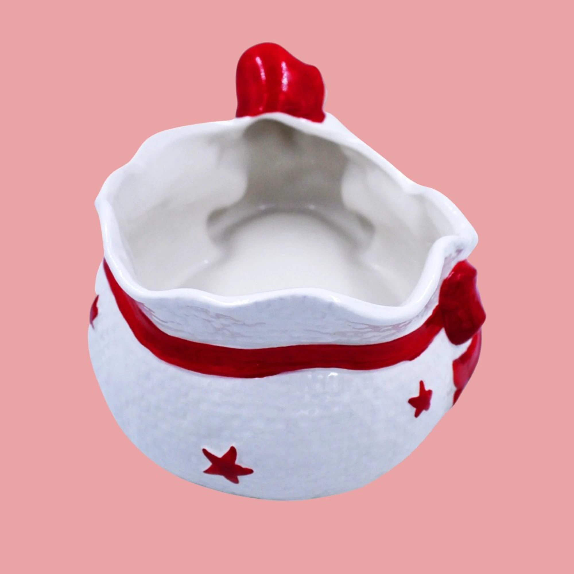 – SANTA WITH BOW SERVING BOWL BIG: Perfect for serving generous portions of your holiday favorites.