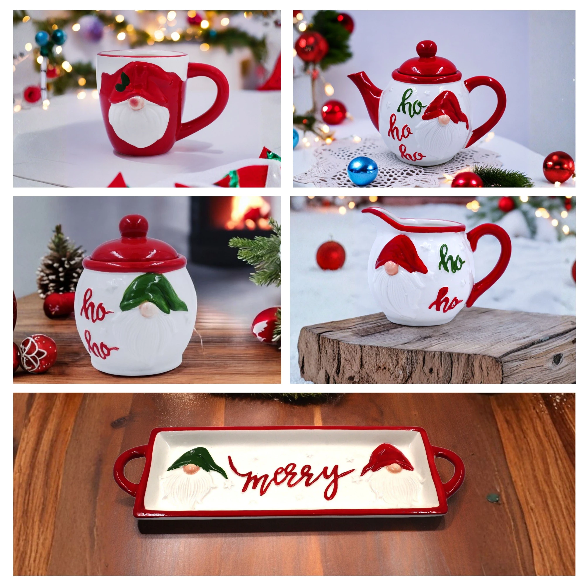 Celebrate the joy of the festive season with our charming Santa-themed drinkware set! Perfect for spreading holiday cheer, this set includes a delightful Santa Face Closed Eyes Red Mug for cozy cocoa evenings. The Merry Santa Serving Tray offers a whimsical touch to your table setting, making serving snacks a joyful experience. Complement your holiday tea time with the Ho Ho Ho Santa Tea Pot, adding a dash of santa’s magic to every pour. The Ho Ho Sugar Pot and Ho Ho Milk Pot complete the collection, ensuring every hot beverage is crafted with love.