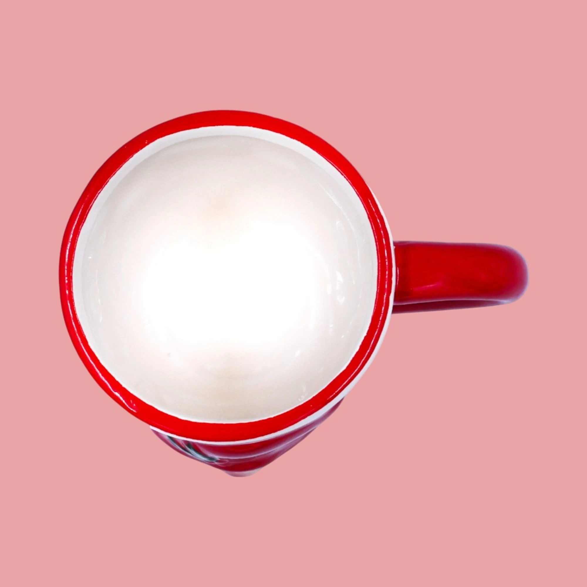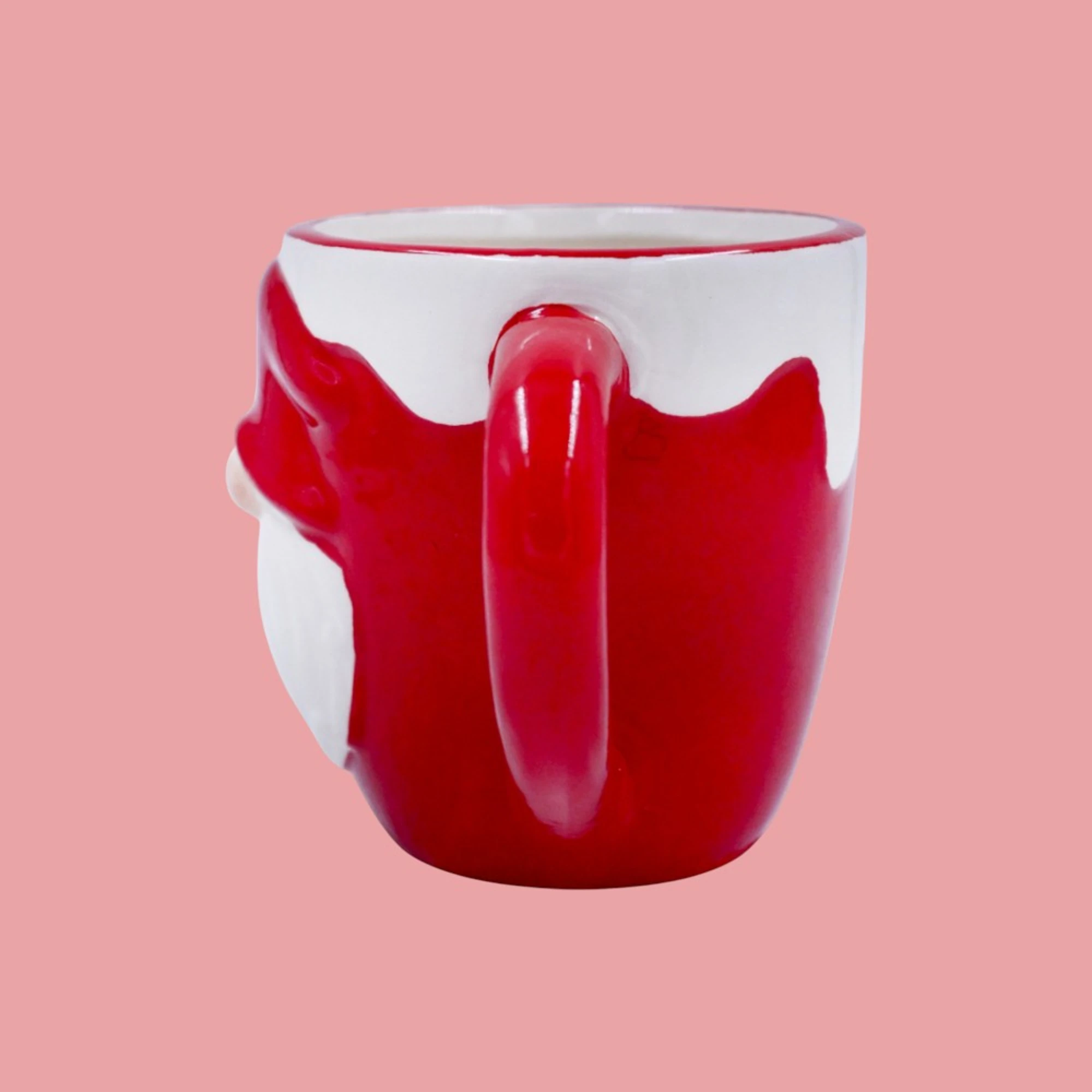 – Santa Face Closed Eyes Red Mug: Perfect for hot cocoa