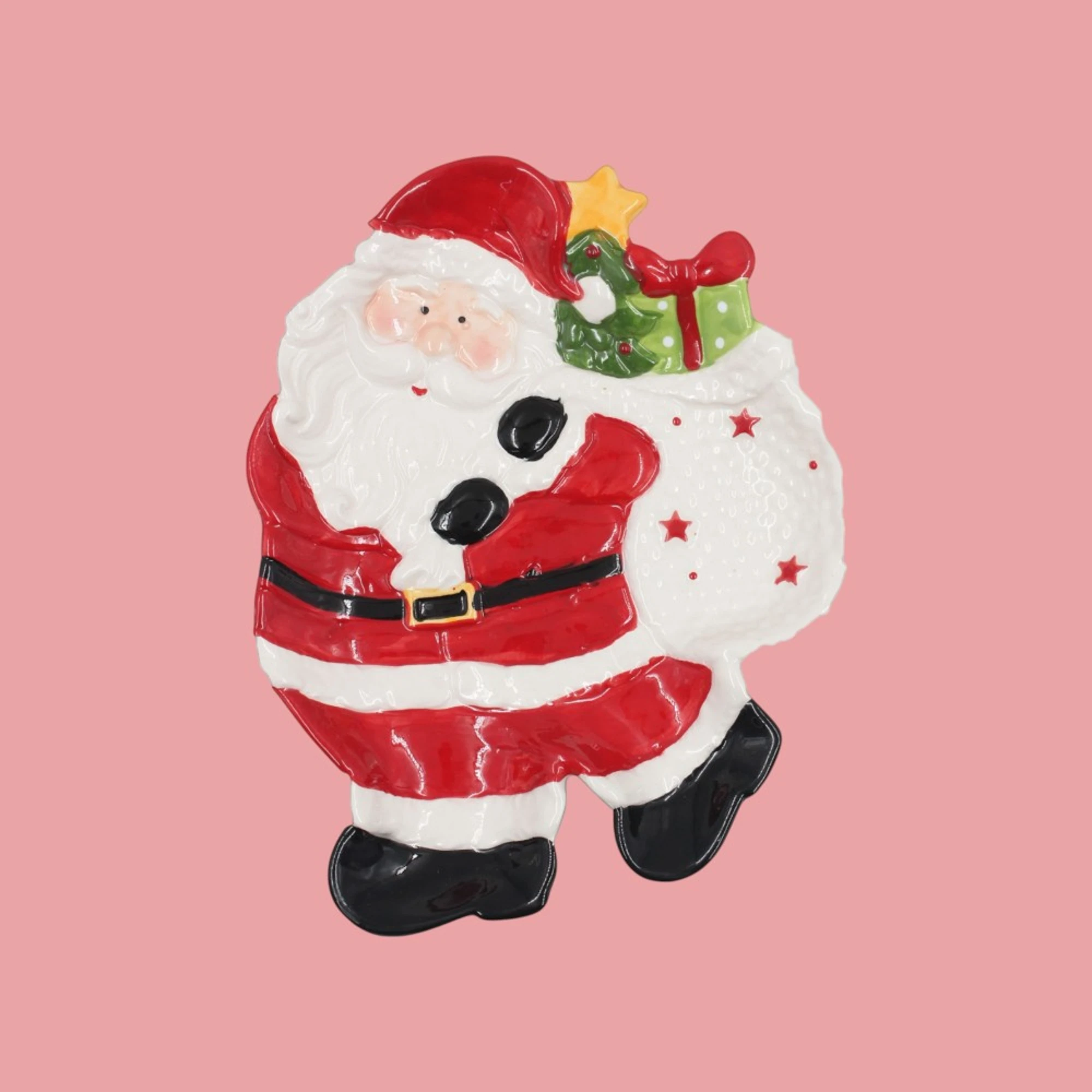 – Santa with Gift Bag Serving Tray: Perfect for serving snacks in a festive way.