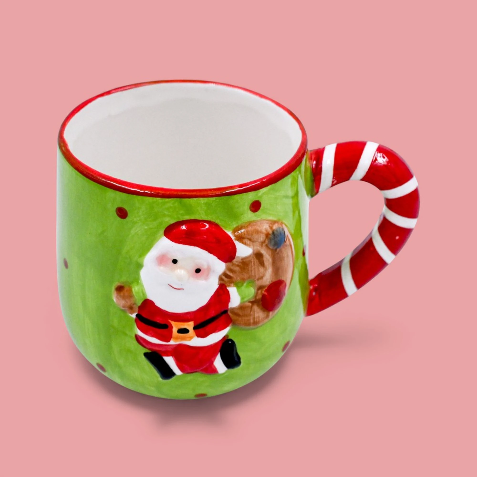 – Santa Green Xmas Mug: Vivid green paired with a jolly Santa design adds a playful twist to your mornings.