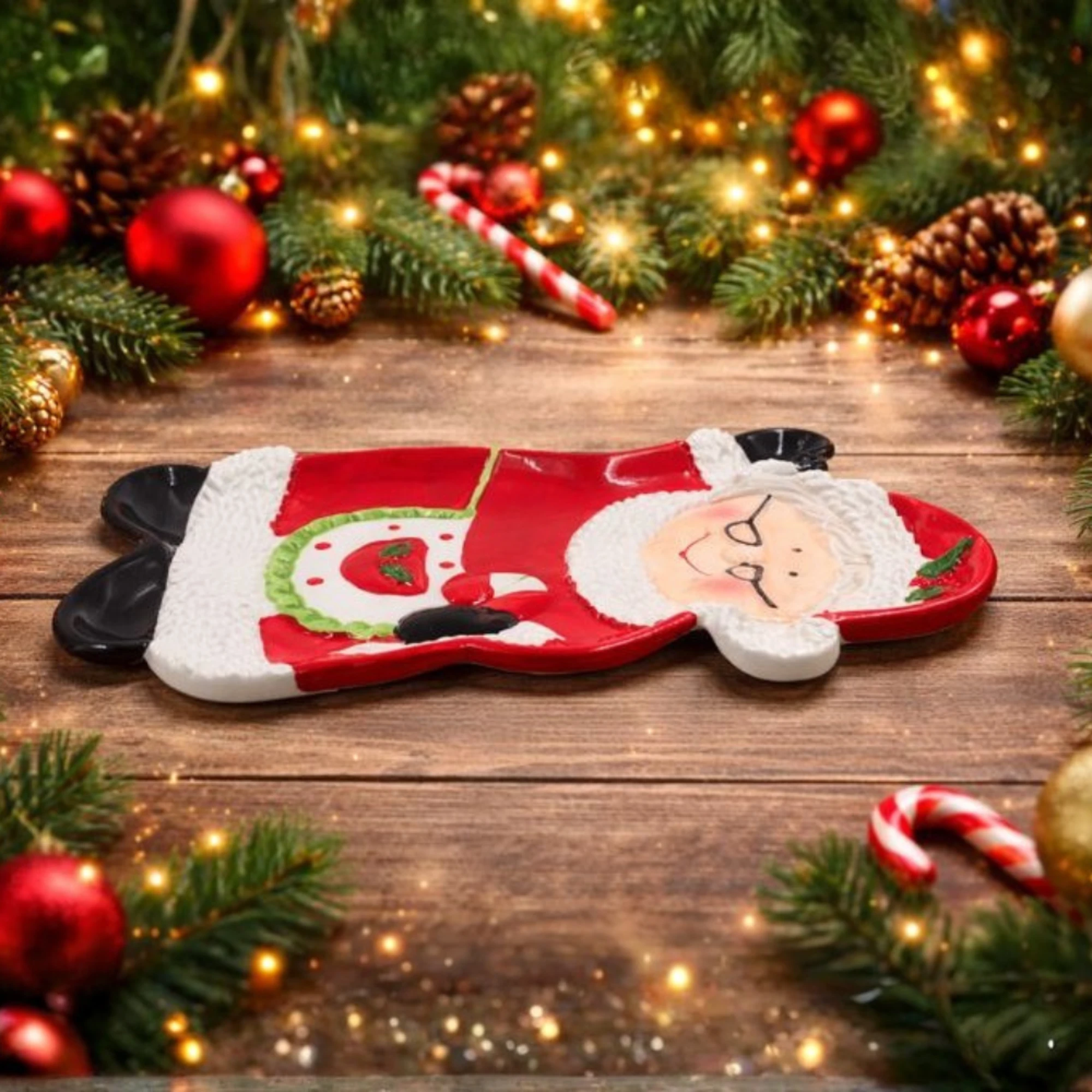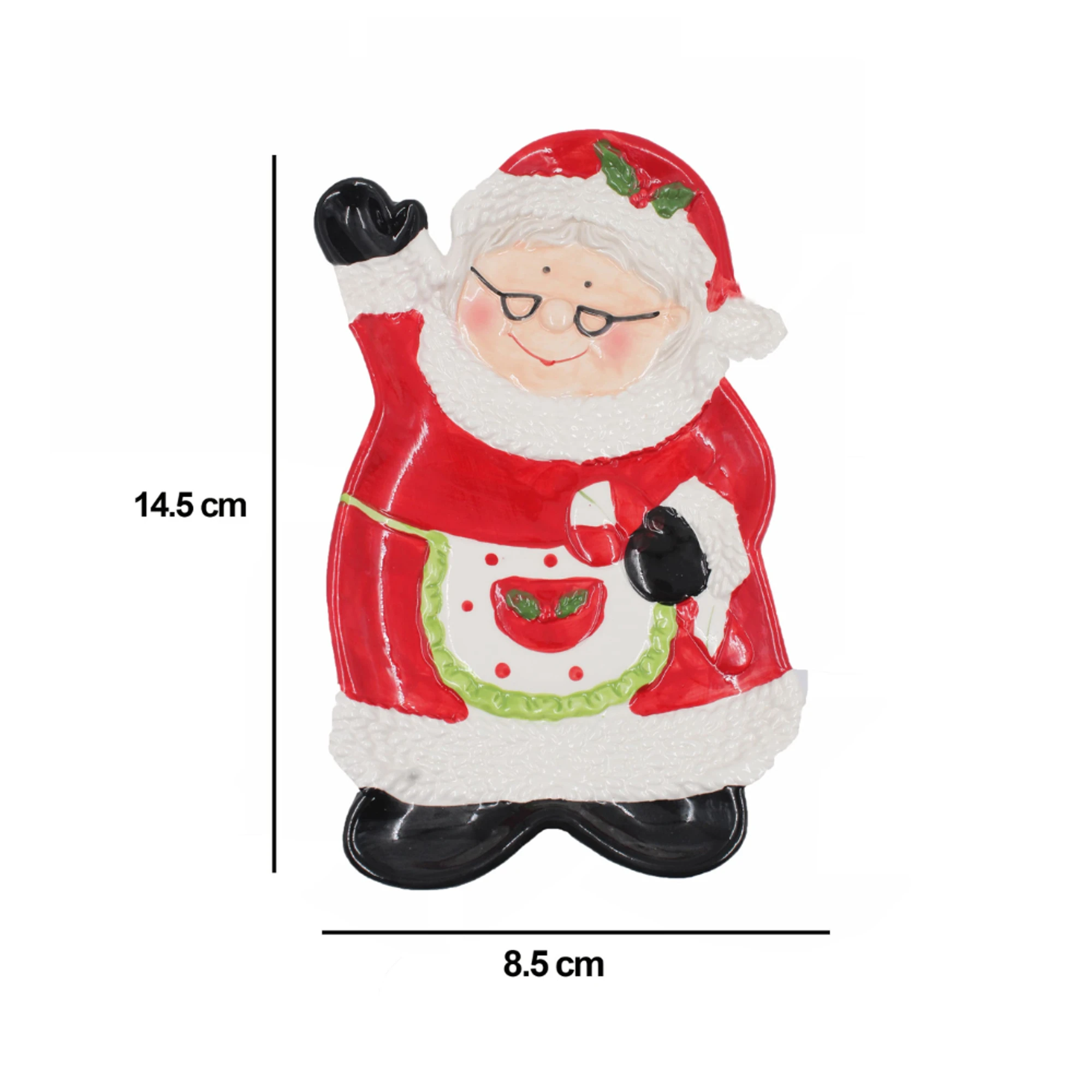 Bring holiday cheer to your table with the delightful Waving Mrs. Claus Serving Tray. Perfect for serving cookies, snacks, or appetizers with a festive flair.