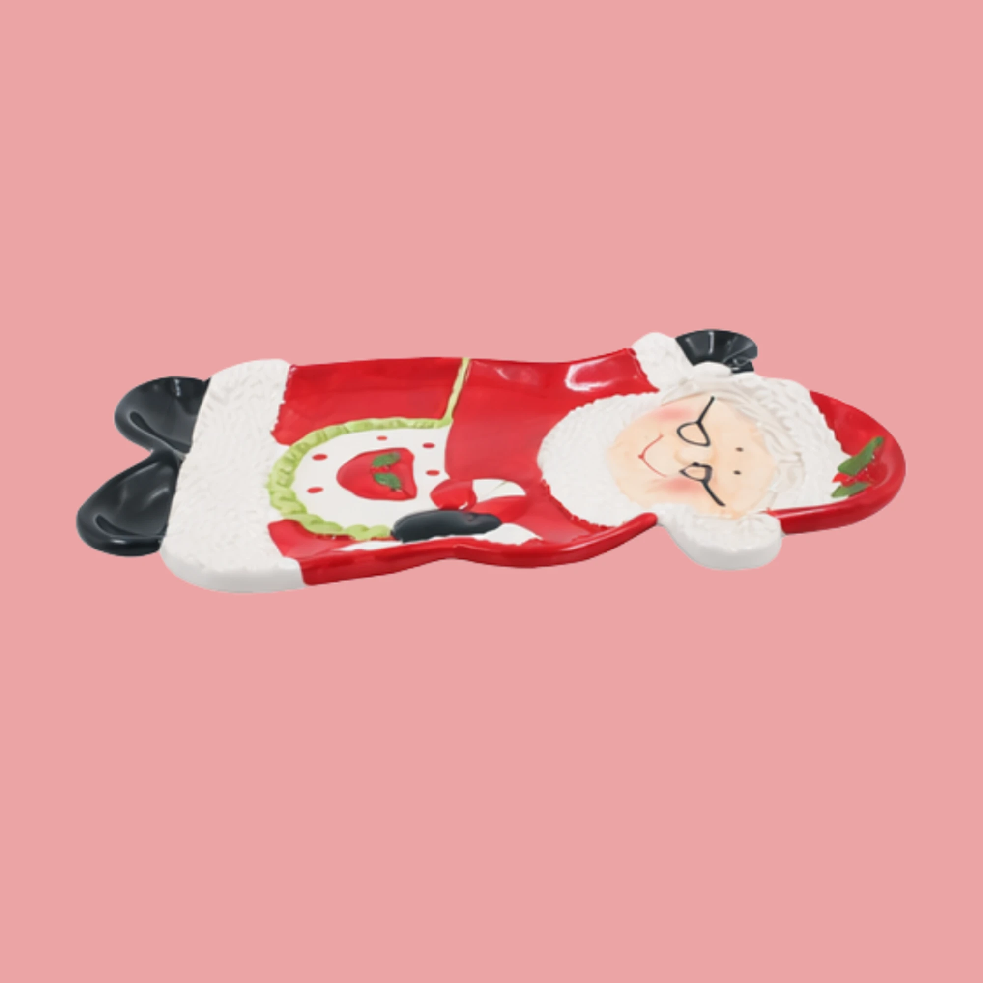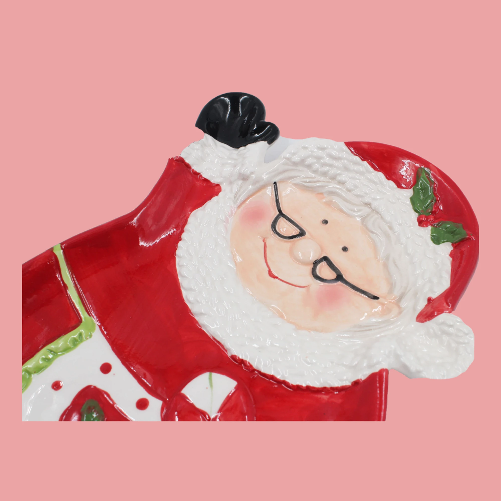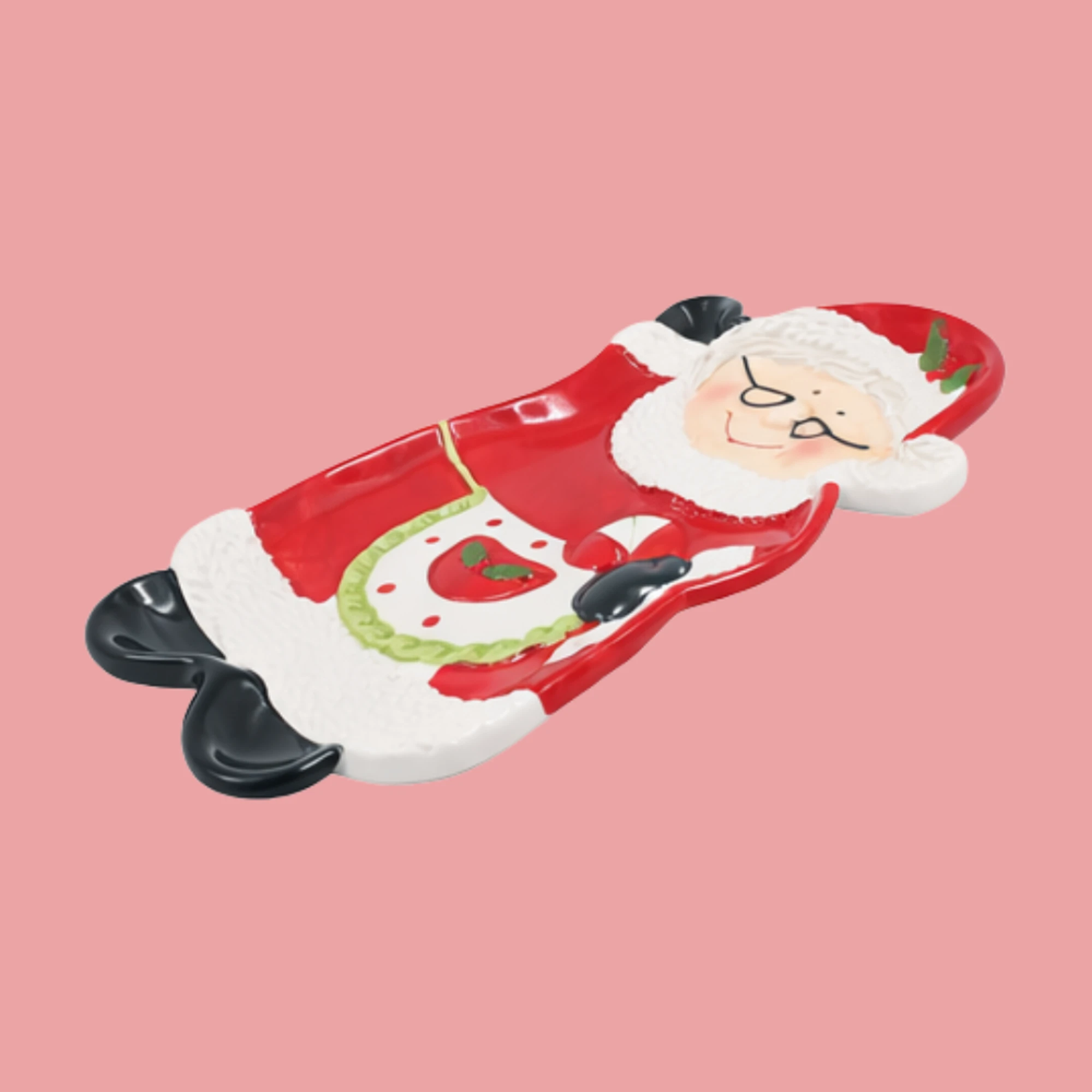 Celebrate the season with a touch of whimsy as Mrs. Claus spreads joy and serves up delicious treats on this charming tray.