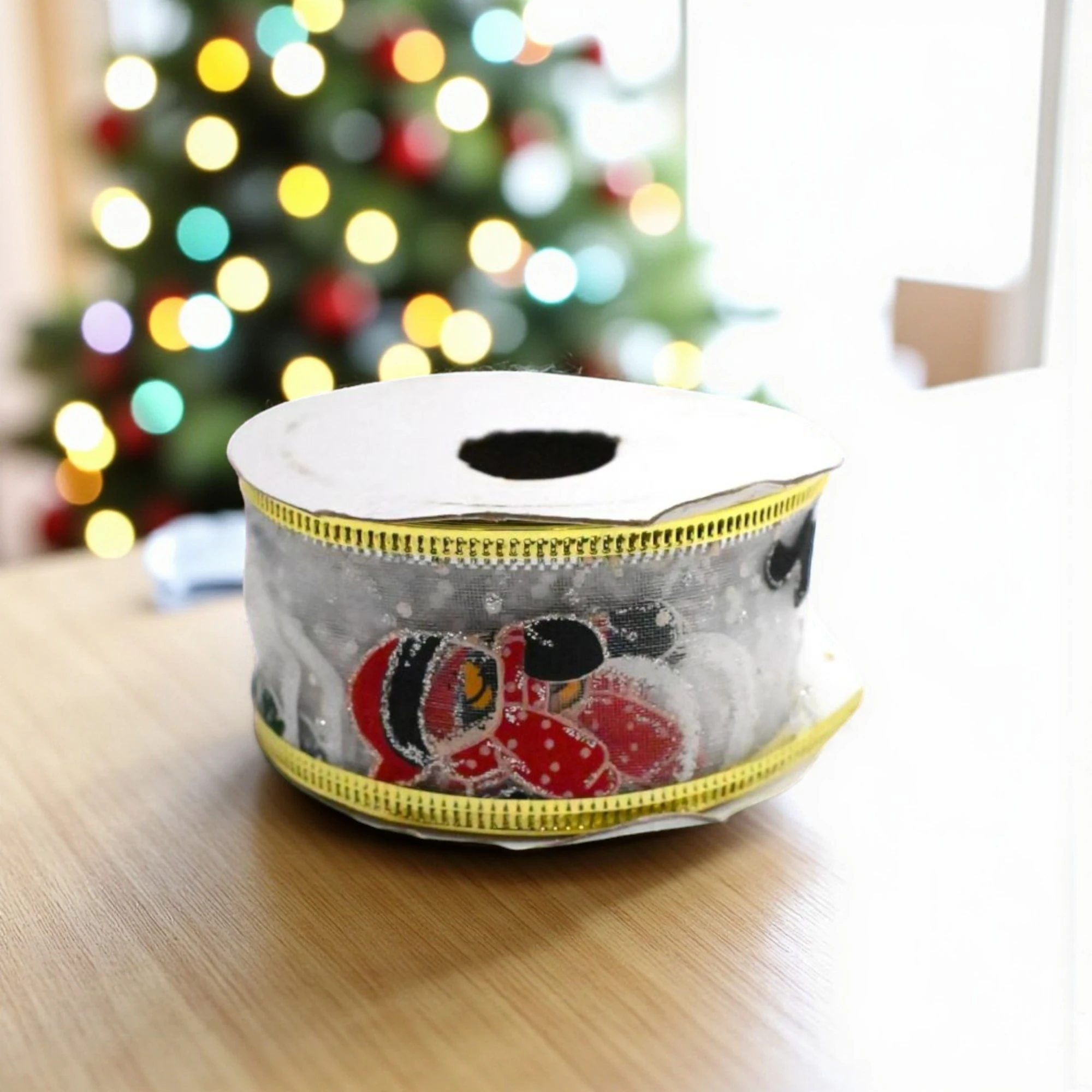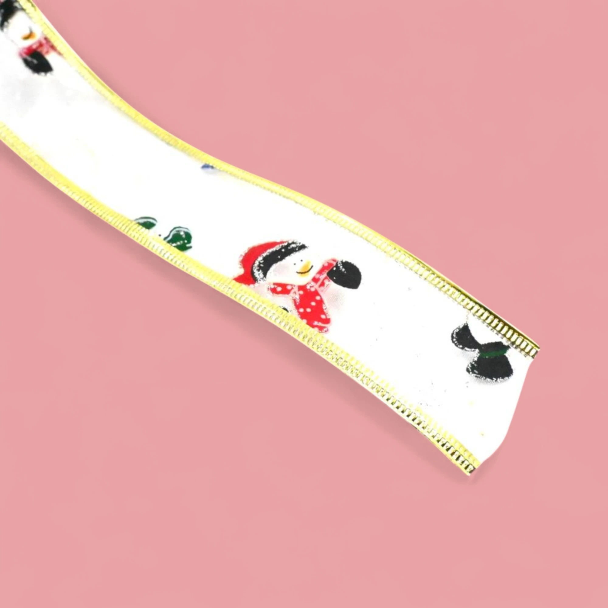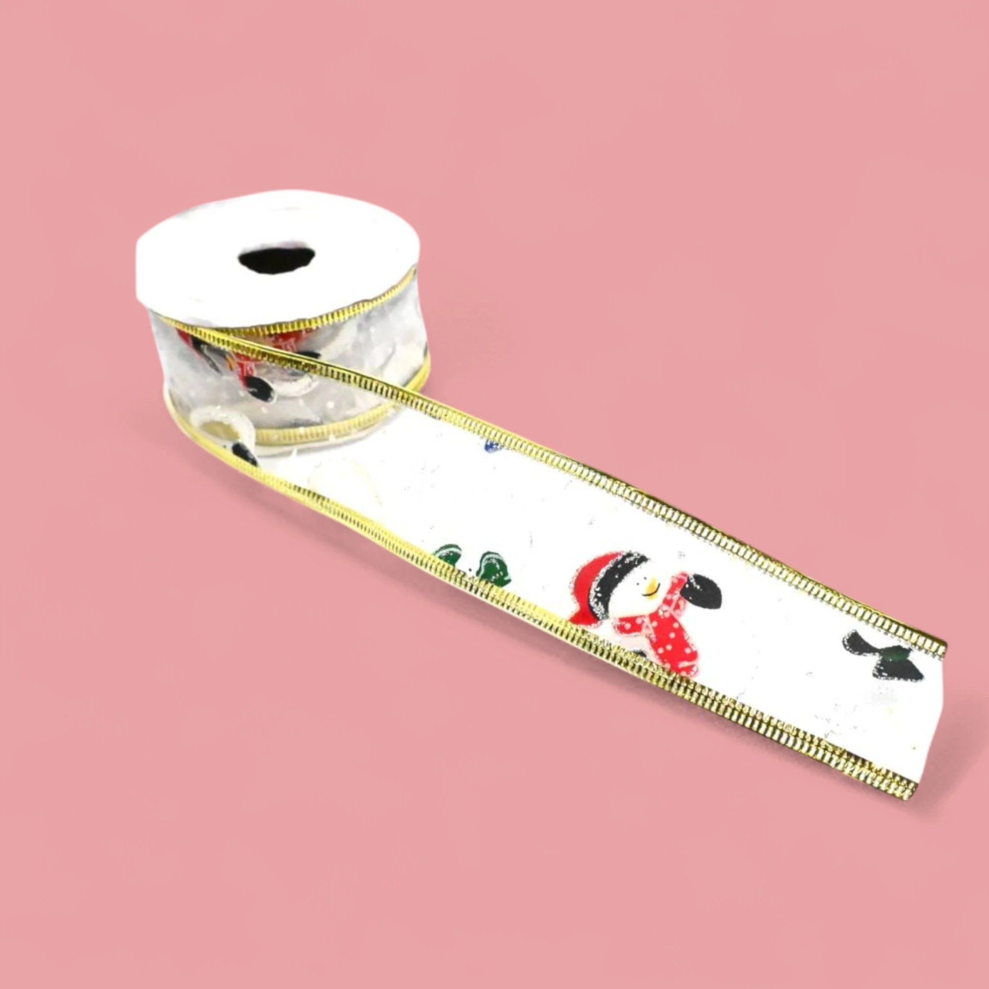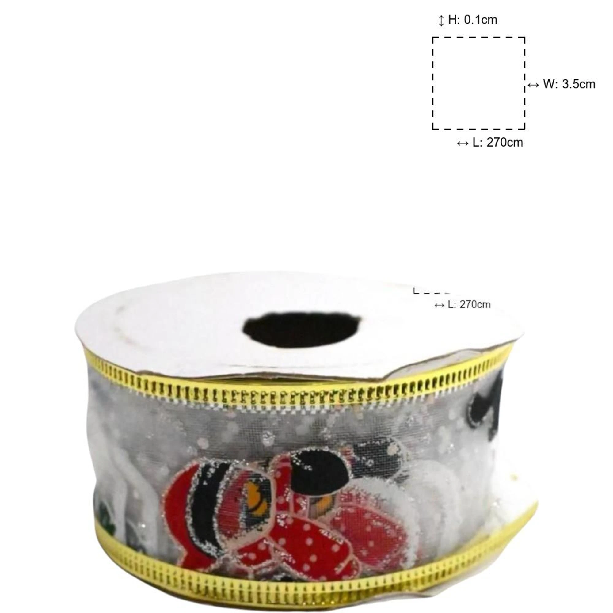 Get ready to sprinkle a touch of festive cheer around your home with our XMAS Wired Organza White Snowman Ribbon. Measuring 3.8 cm in width and spanning a generous 2.7 meters per roll, this ribbon is perfect for all your holiday decorating needs.