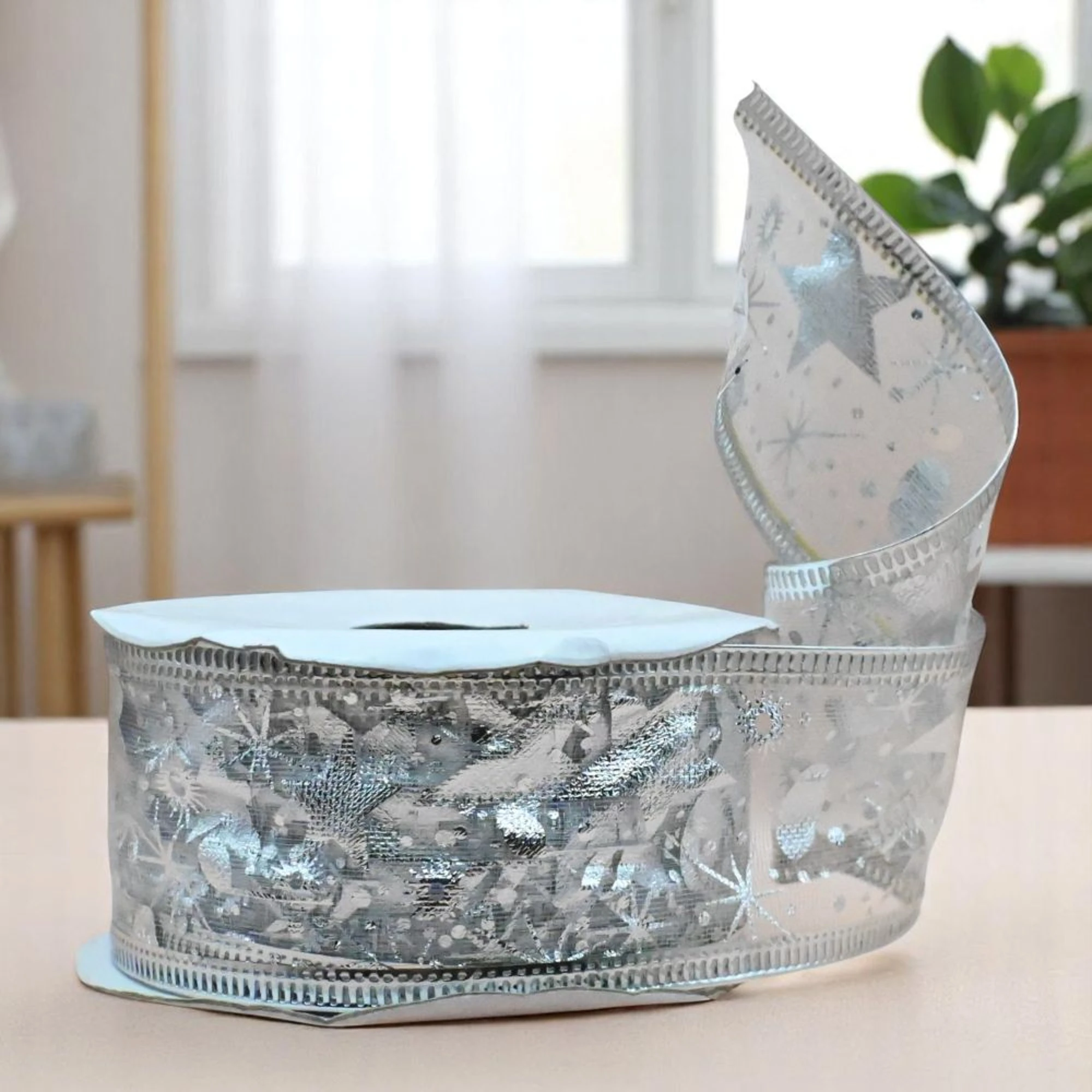 The sheer beauty of organza, combined with a delicate white star design, adds a sparkling elegance to your gifts, wreaths, and holiday decor. Whether you’re wrapping a special present or decorating your Christmas table, this ribbon brings a magical touch to any setting.