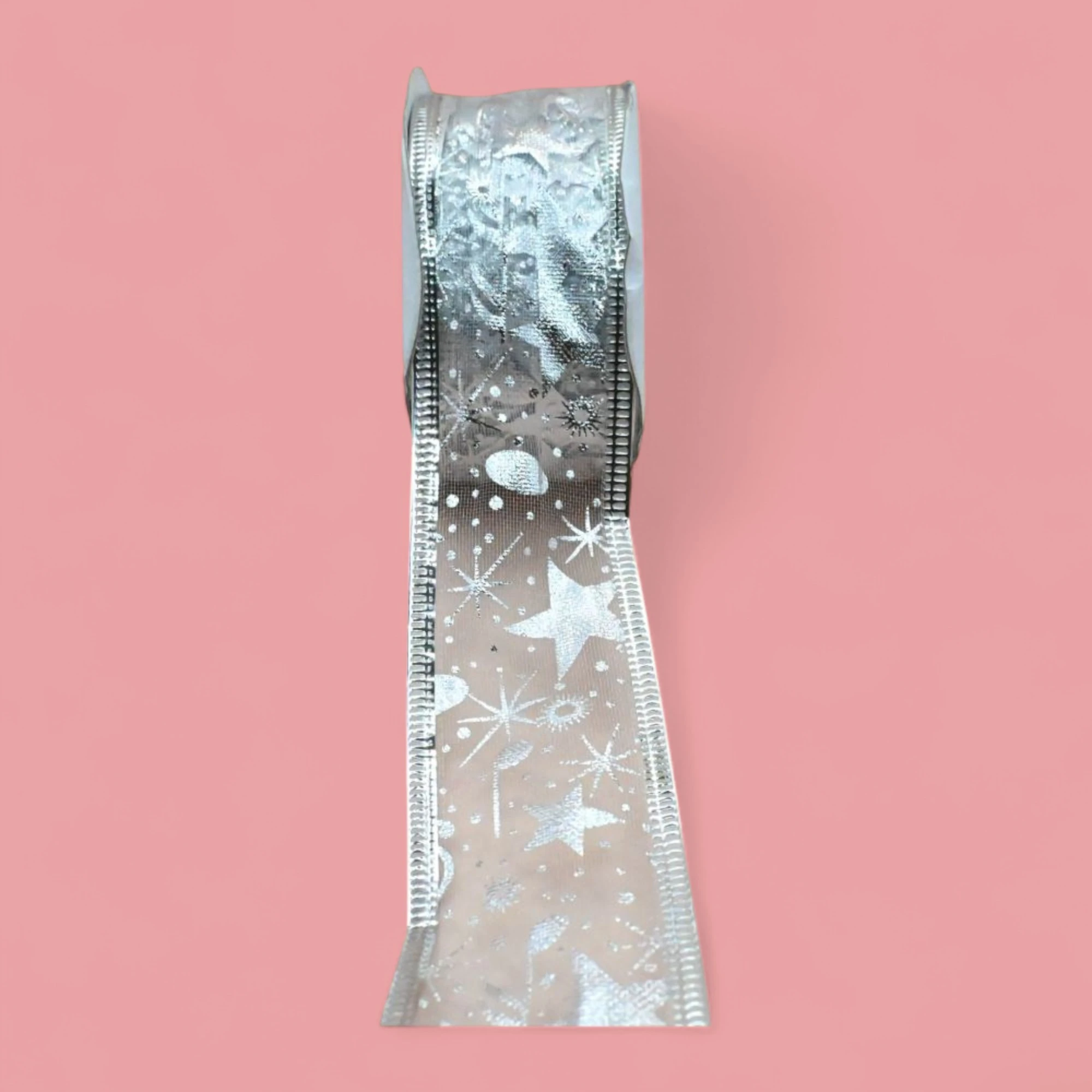 – Material & Design: Made from premium-quality organza, this ribbon boasts a sheer texture with a delicate white star design that shimmers softly under lights.