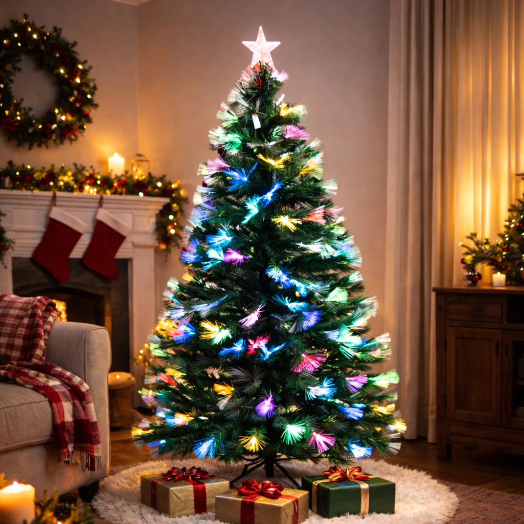 Bring a splash of vibrant holiday cheer into your home with our 5 ft Fibre Optic Multi-Color Christmas Tree! This mesmerizing tree adds charm to any space with its colorful fiber optic lights that twinkle and dance in a captivating display.