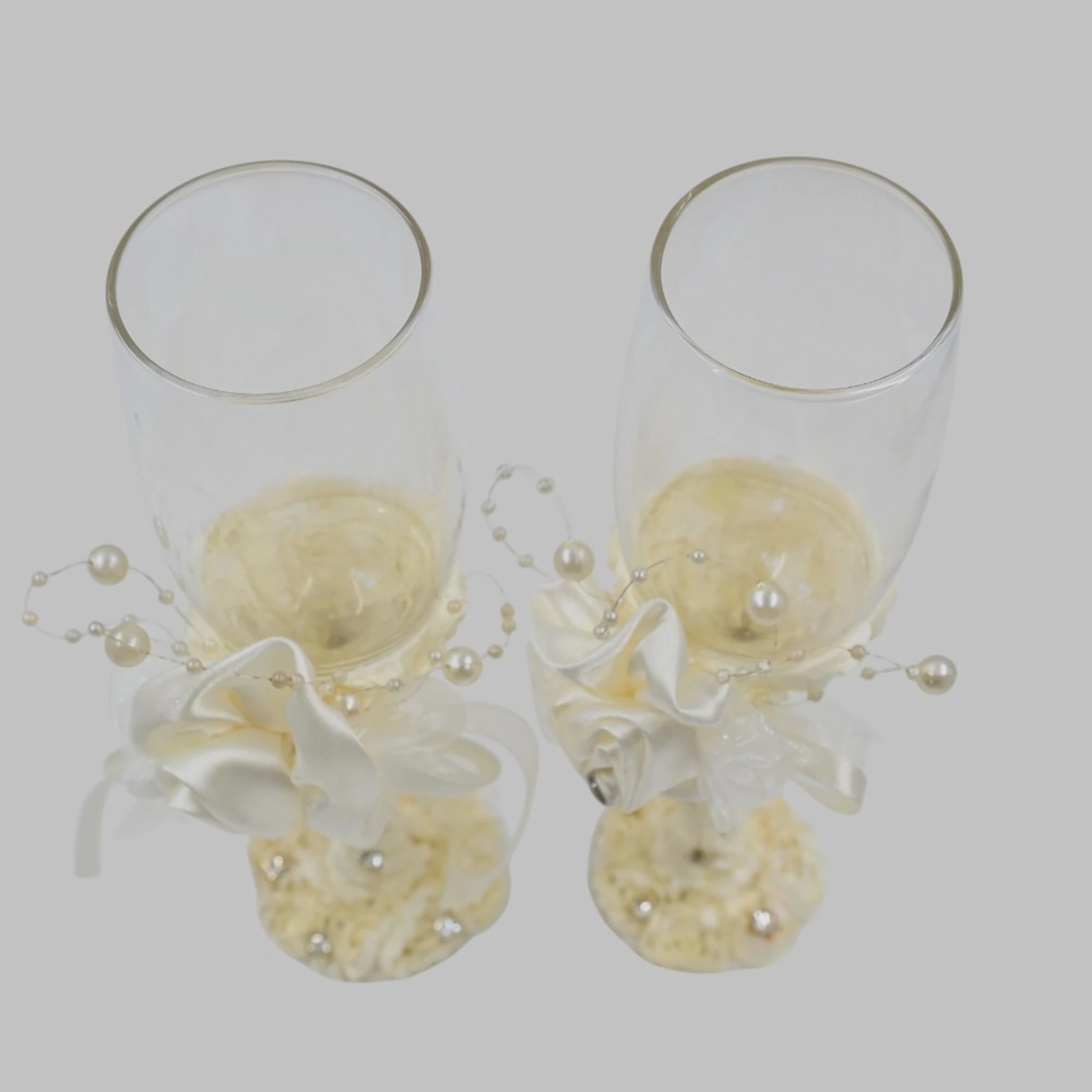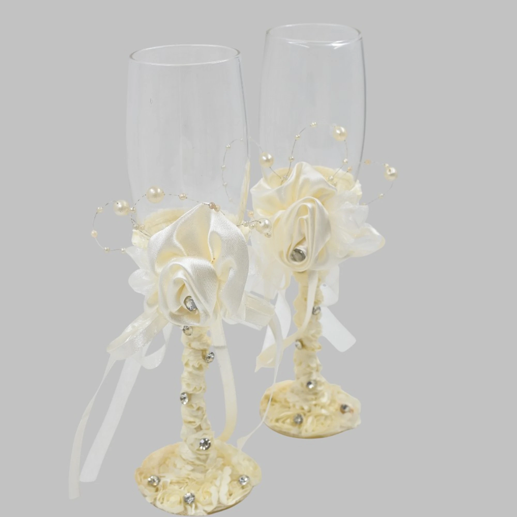 Celebrate those special moments with a touch of elegance! These Floral Offwhite Champagne Flutes come as a charming pair perfect for any celebration.