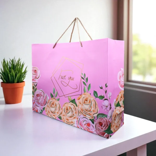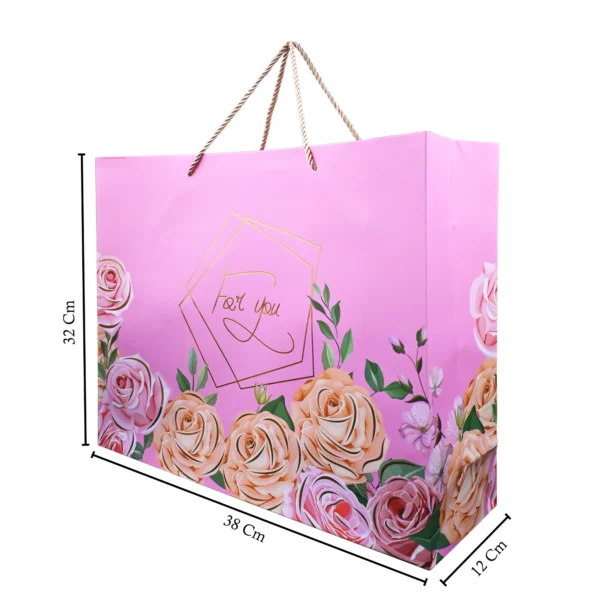 Delight in the cheerful charm of these FOR YOU Pink Paper Bags, perfect for making any gift extra special. Each bag measures 38 x 12 x 32 cm, offering ample space for your thoughtful presents.