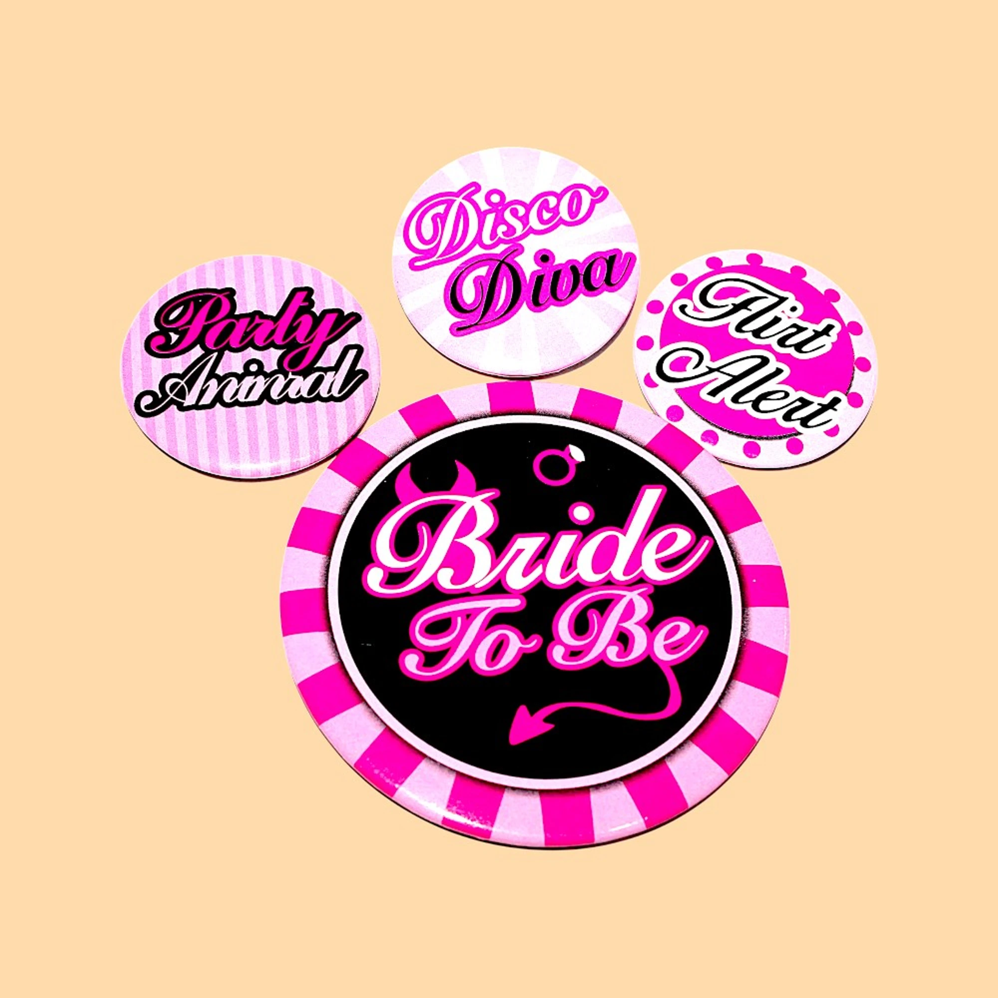 Whether you’re heading out for a night on the town or hosting a lively gathering at home, these badges will ensure everyone knows whose part of the squad. Make the bride’s big night out even more memorable with a touch of flair that all your friends will love!