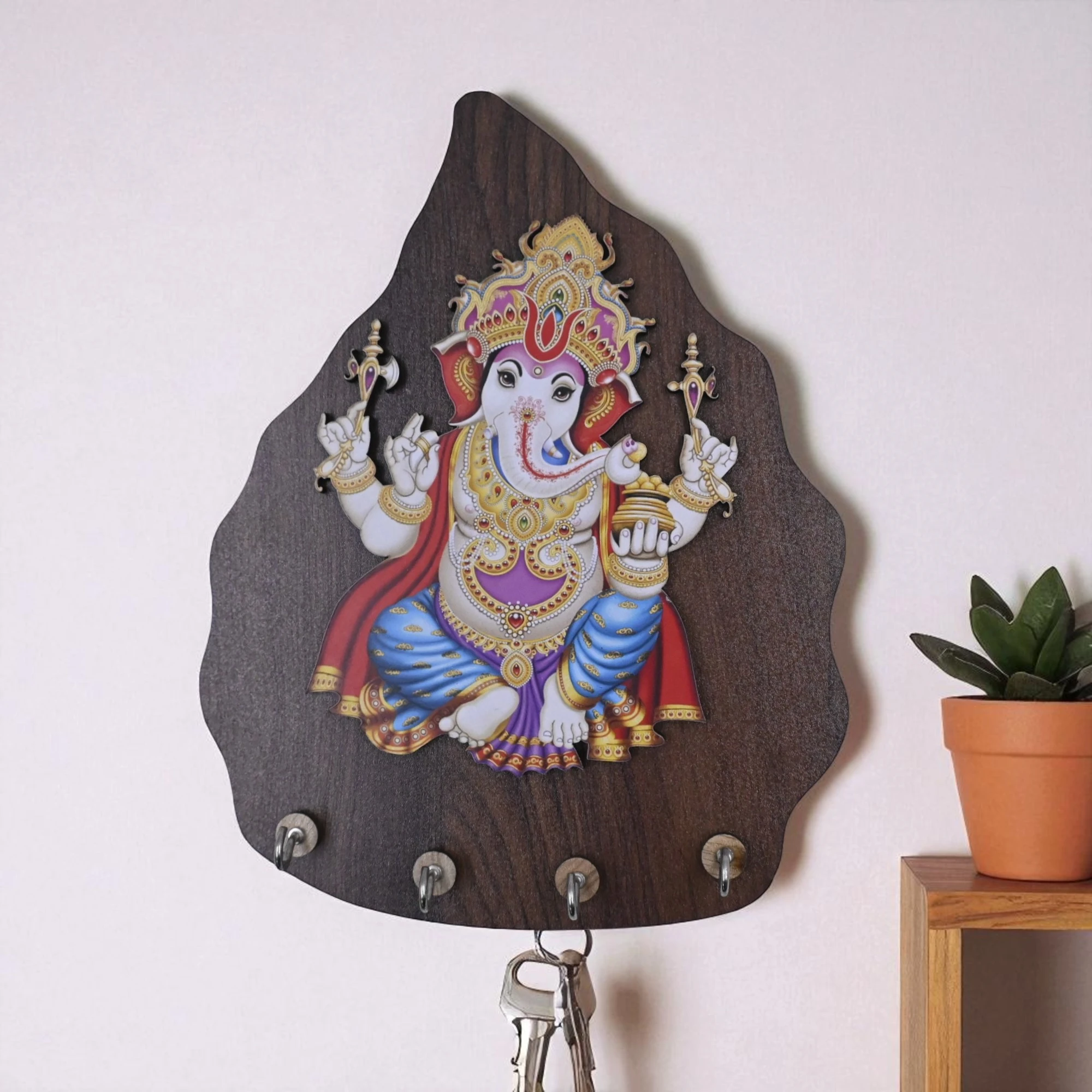 This charming key holder not only helps you organize your keys but also brings a sense of serenity to your living space. Let the blessings of Lord Ganapati grace your home every time you reach for your keys. Perfect for those who appreciate art and spirituality in their home decor.