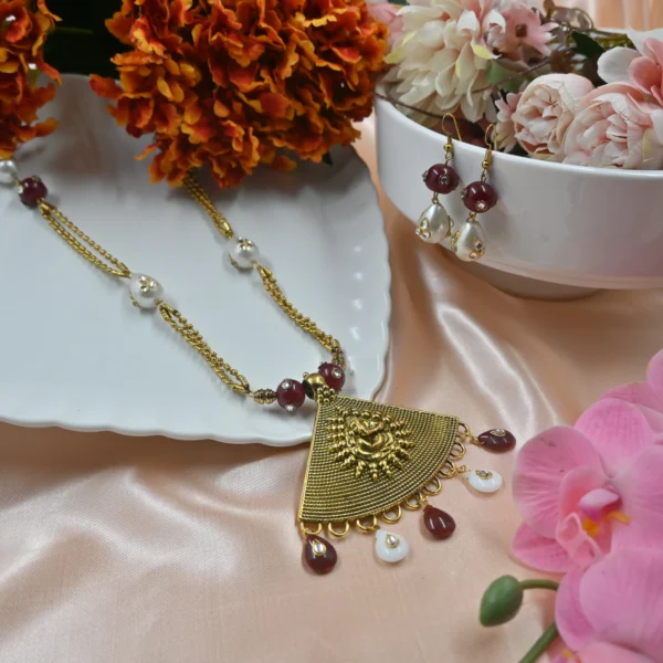 Whether you’re dressing up for a special event or adding a touch of glamour to your everyday attire, this pendant earring set is sure to turn heads and spark conversations. Embrace your spirituality in style and let the blessings of Ganpati accompany you wherever you go.
