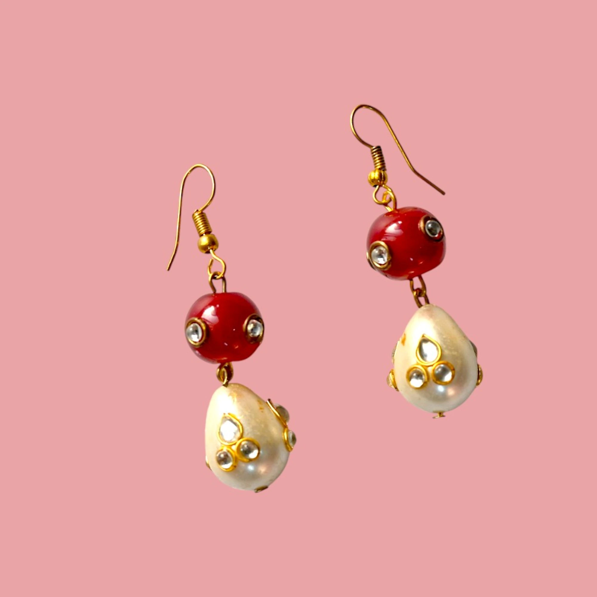 HomeHoliday HaulGarba VibesEthnic Jewellery Ganpati Red & White Pendant Earring Set