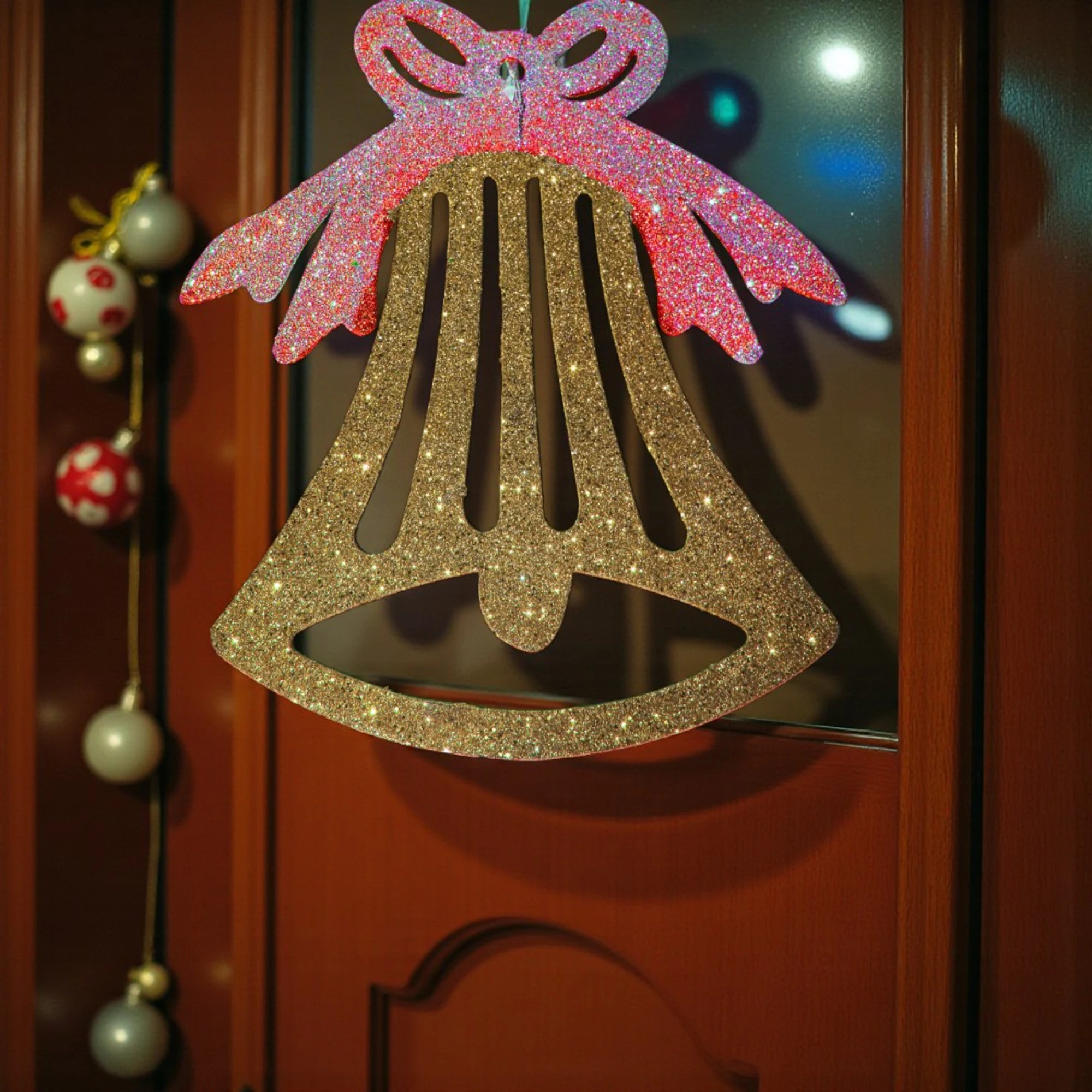 Add a touch of shimmer to your festive celebrations with Glitter Bell Decor in Gold & Red. Perfect for Christmas trees, wreaths, or mantel displays, these bells offer a classic and elegant style.