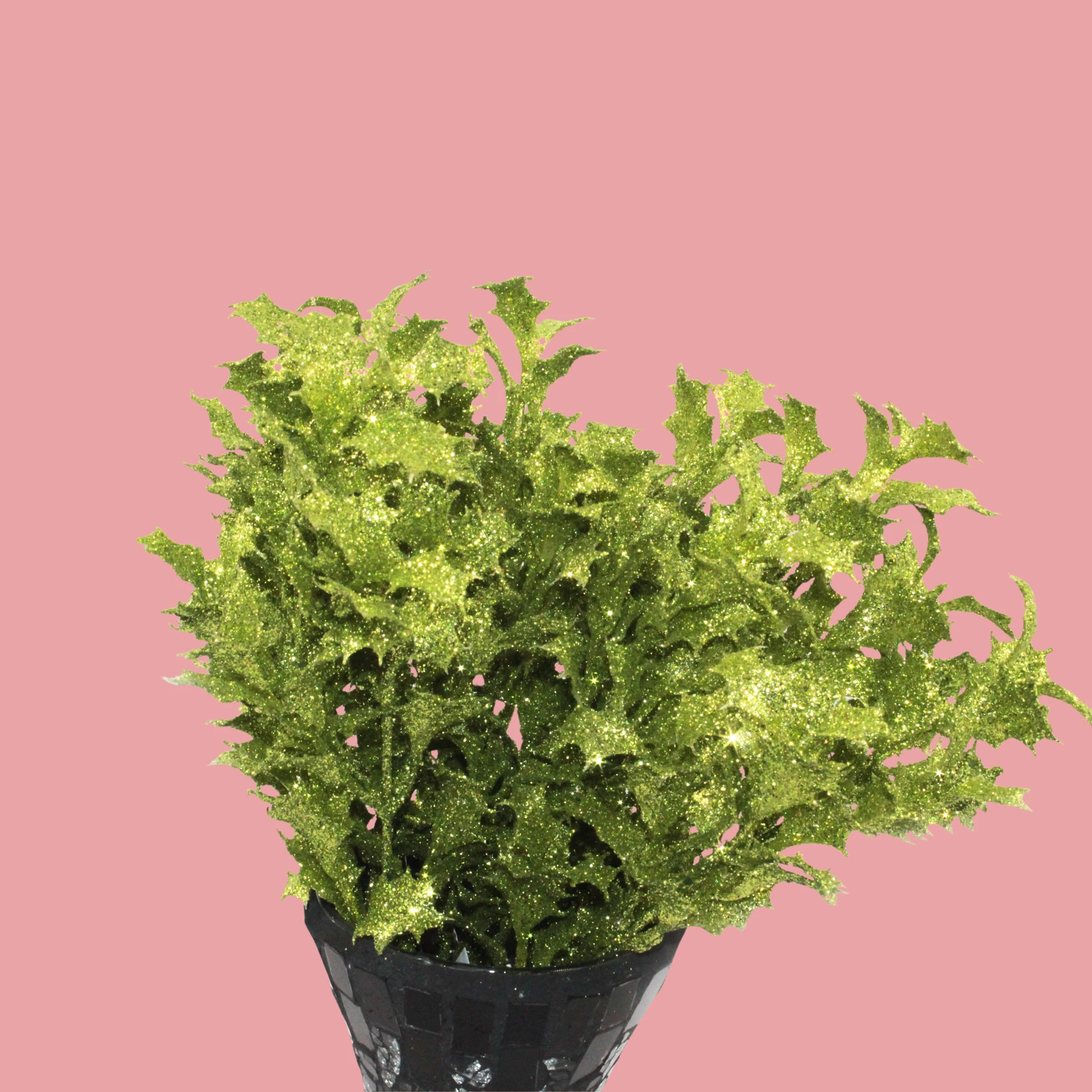Add a touch of sparkle to your holiday decor with the Glitter Holly Bunch Small Green. This delightful decorative piece is perfect for bringing the festive spirit into your home. Each bunch is beautifully detailed with shimmering green leaves and glittery accents that catch the light just right.