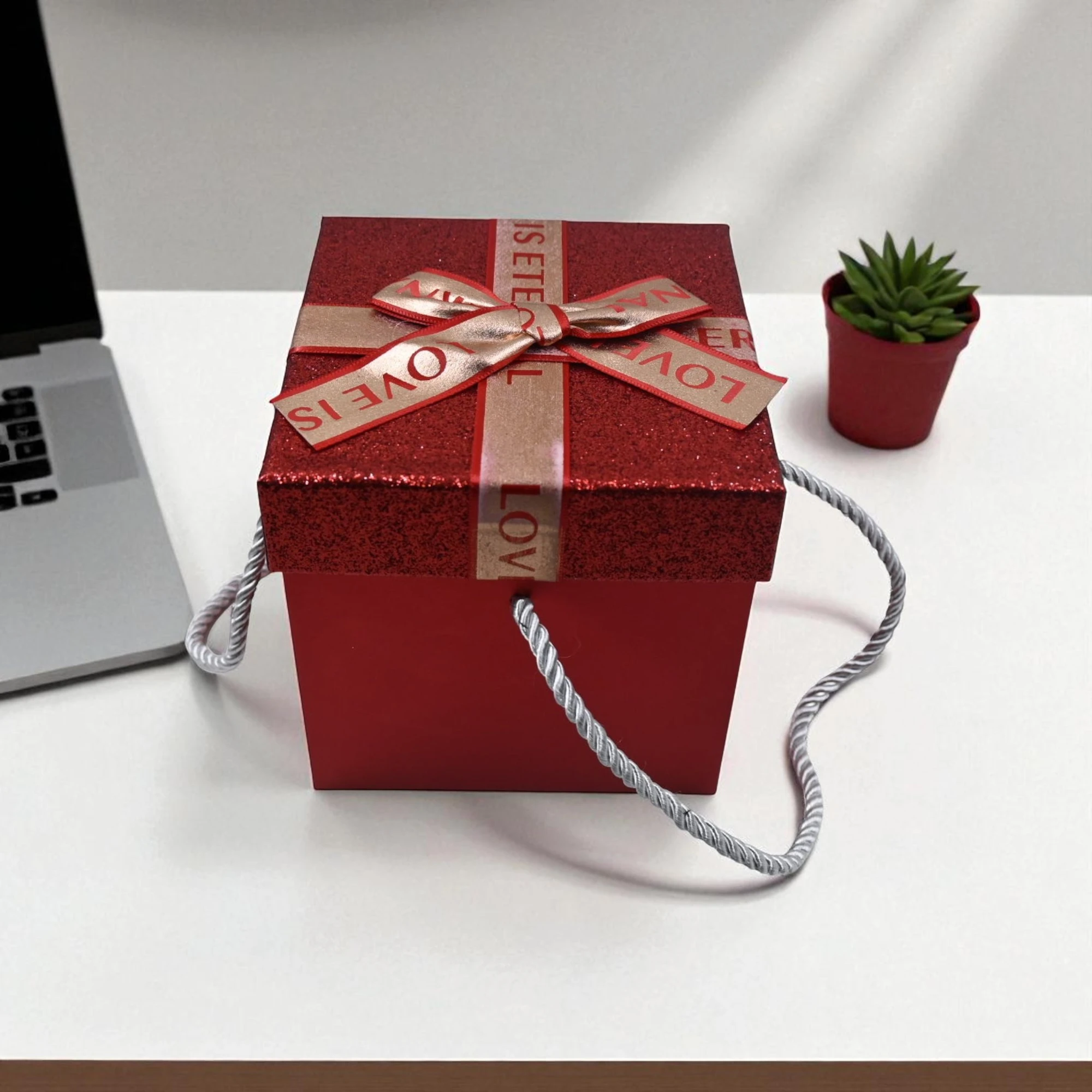 Wrap your love in a sparkle of elegance and charm with the Glitter Love Eternal Gift Box in Medium Red. Perfect for any occasion, this dazzling box adds a touch of glamour to your heartfelt gesture.