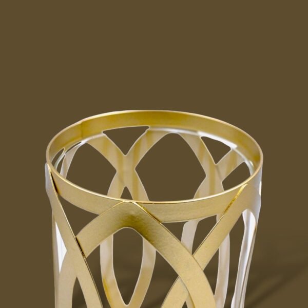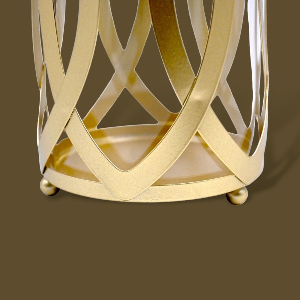 Discover the embodiment of sophistication with this exquisite lighting accessory, a true testament to masterful craftsmanship. The sleek, golden hue radiates luxury, while the intricate lattice work creates a dance of shadows and light that will captivate any beholder. Designed not just to illuminate your space but to transform it, this piece is a harmonious blend of artistry and functionality. Whether gracing an end table or creating ambiance in a quiet corner, it promises to add a touch of elegance to your home decor. Indulge in the allure of this timeless piece and let it cast its enchanting glow upon your most cherished moments.