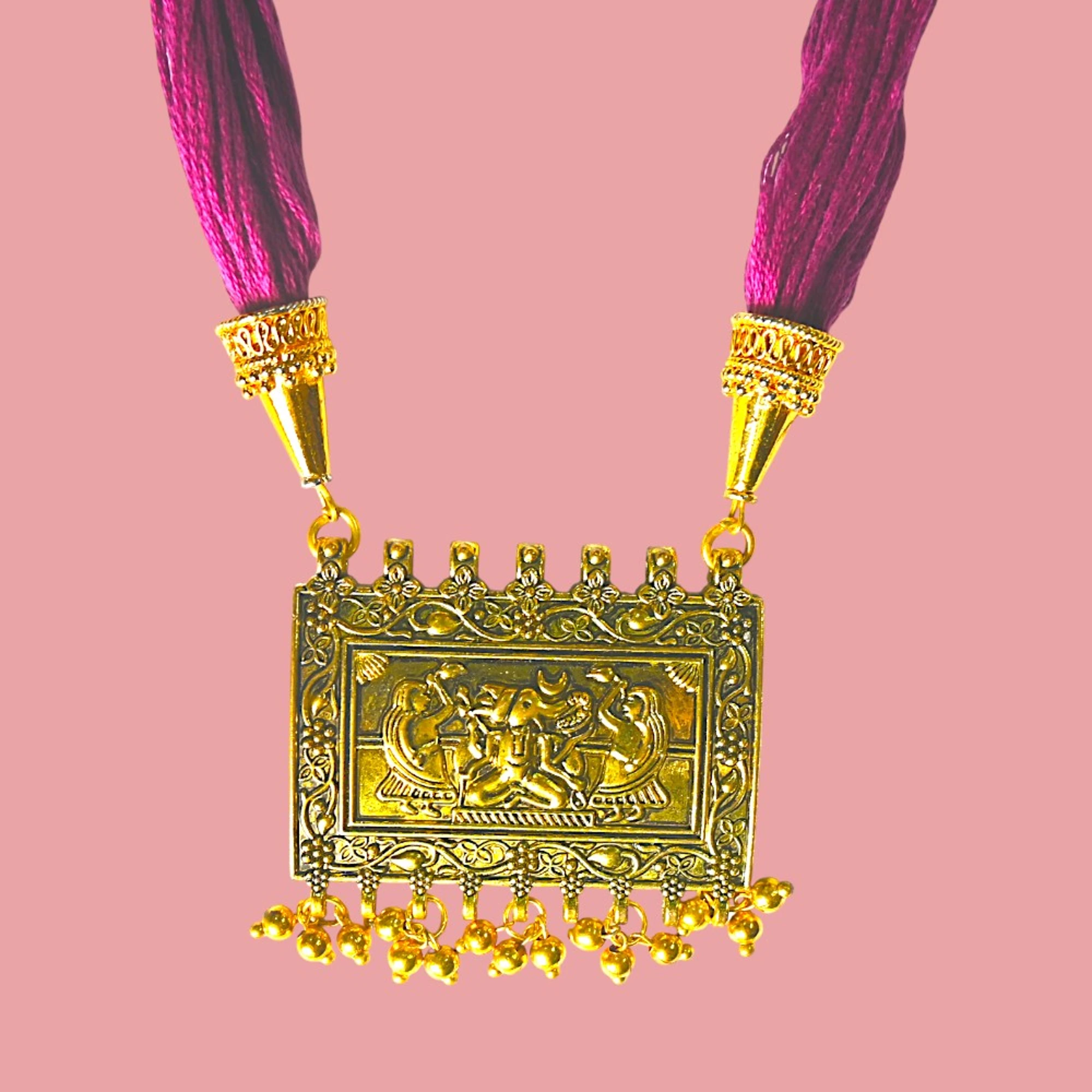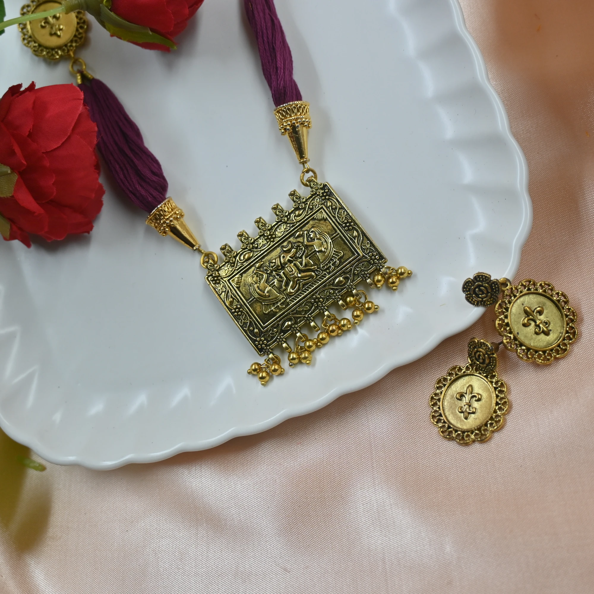 Gold Pendant & Purple Thread Earring Set