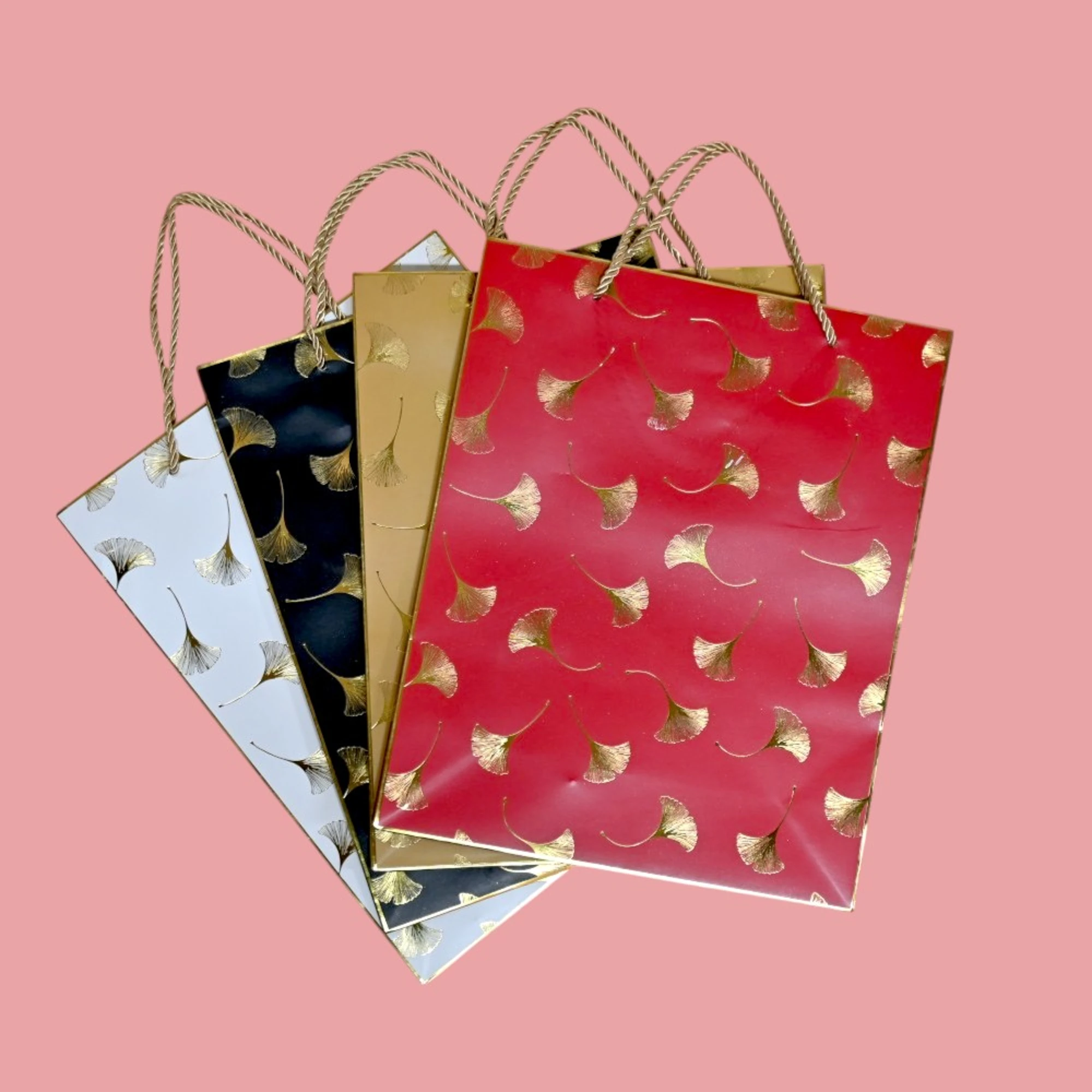 Looking to add a luxurious touch to your gifting experience? These Gold Petal Print Paper Bags are exactly what you need. Perfect for any occasion, these bags come in an elegant set of four different designs, including black, gold, red, and white. Each bag measures 26 x 32 x 10, making them an ideal size for small gifts and goodies.