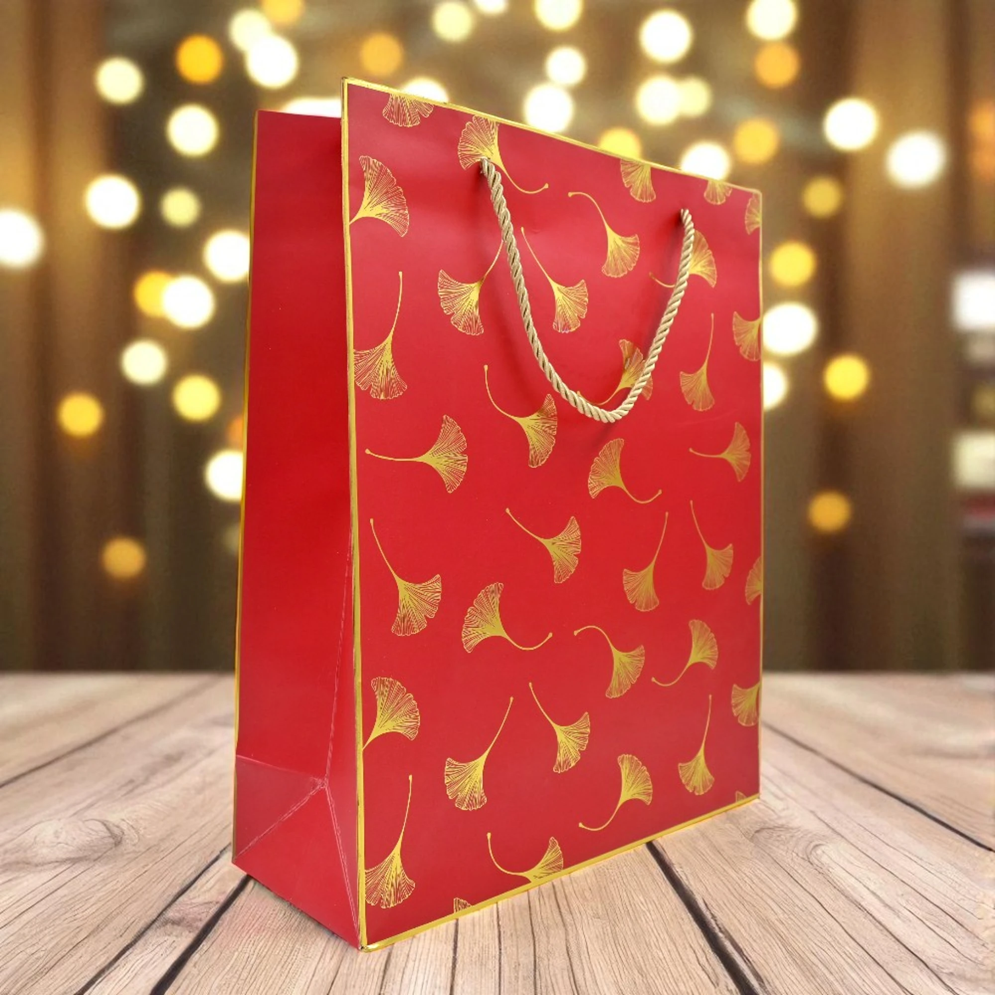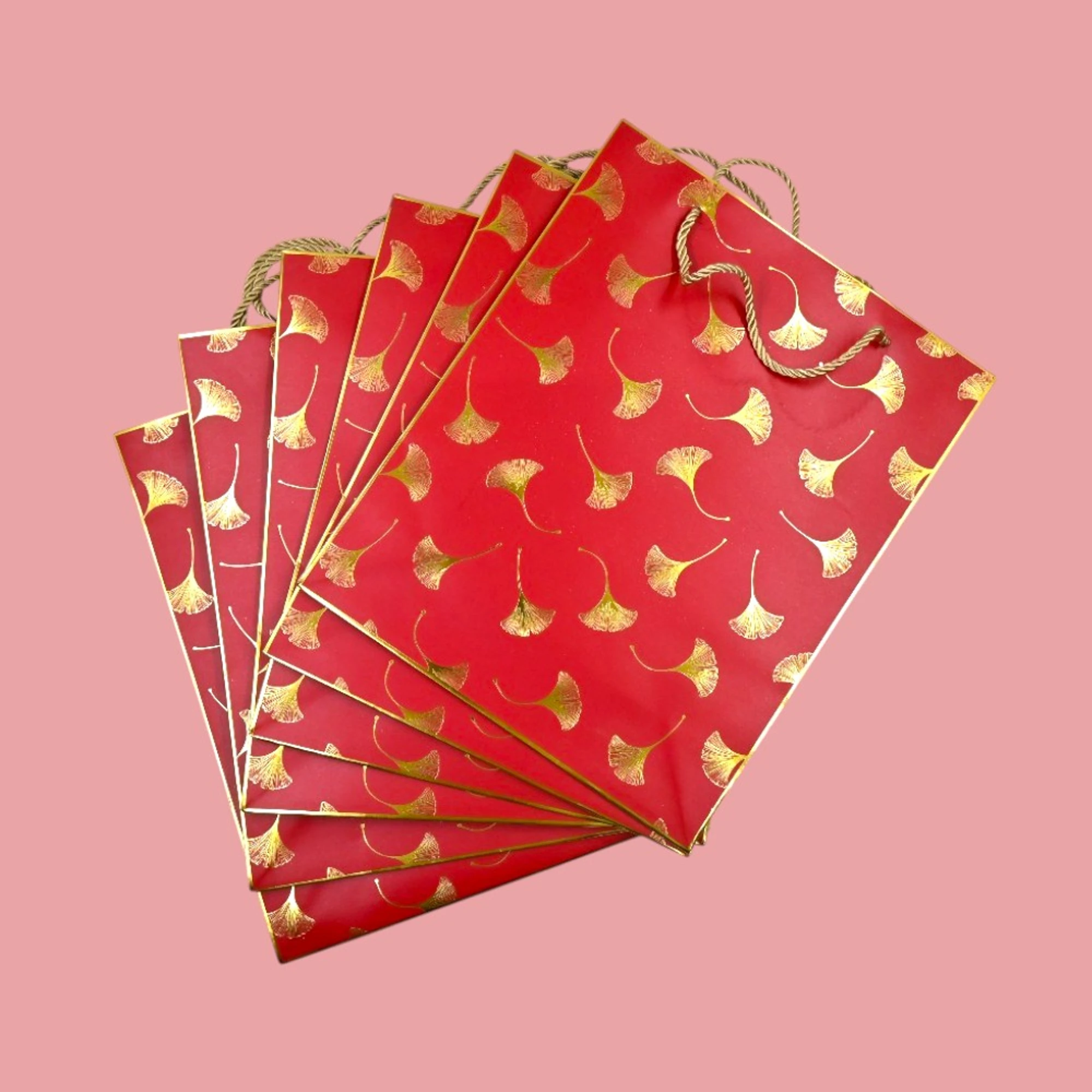These Gold Petal Print Red Paper Bags are the perfect choice for your gifting needs. Compact yet spacious, each bag measures 263210 cm, providing ample space for goodies, trinkets, or stylish gift presentations.
