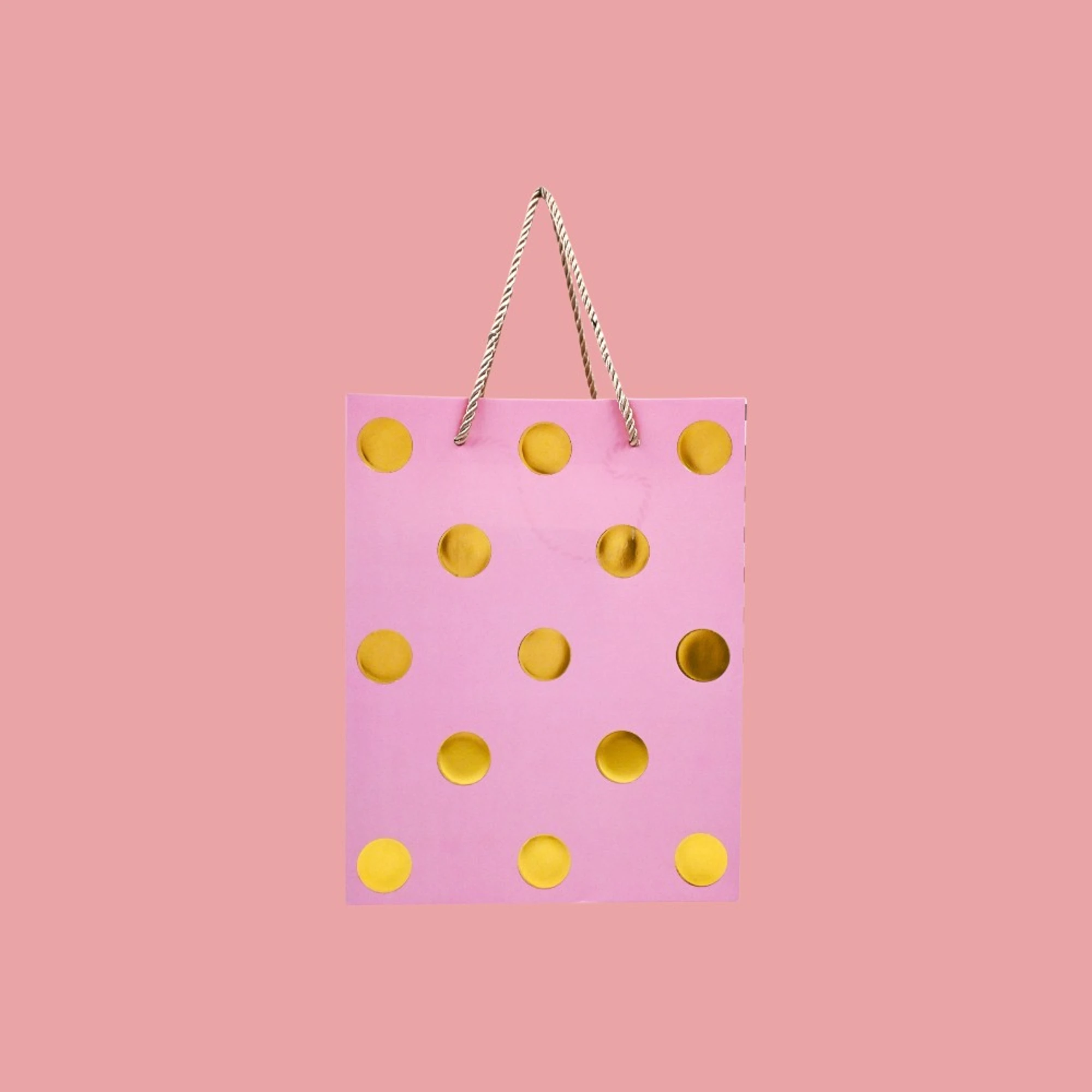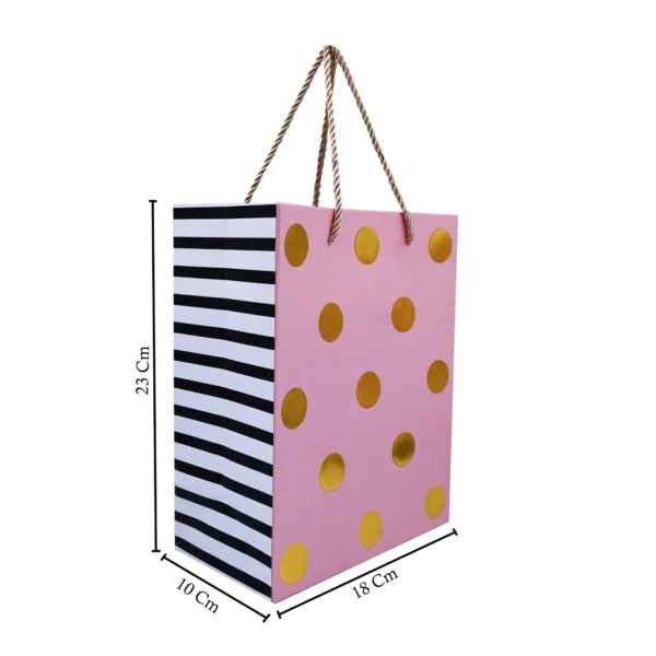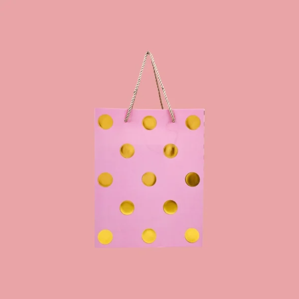 Turn your gifting into an art with these adorable Gold Polka Dot Pink Mini Paper Gift Bags (Set of 6). These bags measure 18 x 23 x 10 cm, offering the perfect size for small tokens of affection or party favors.