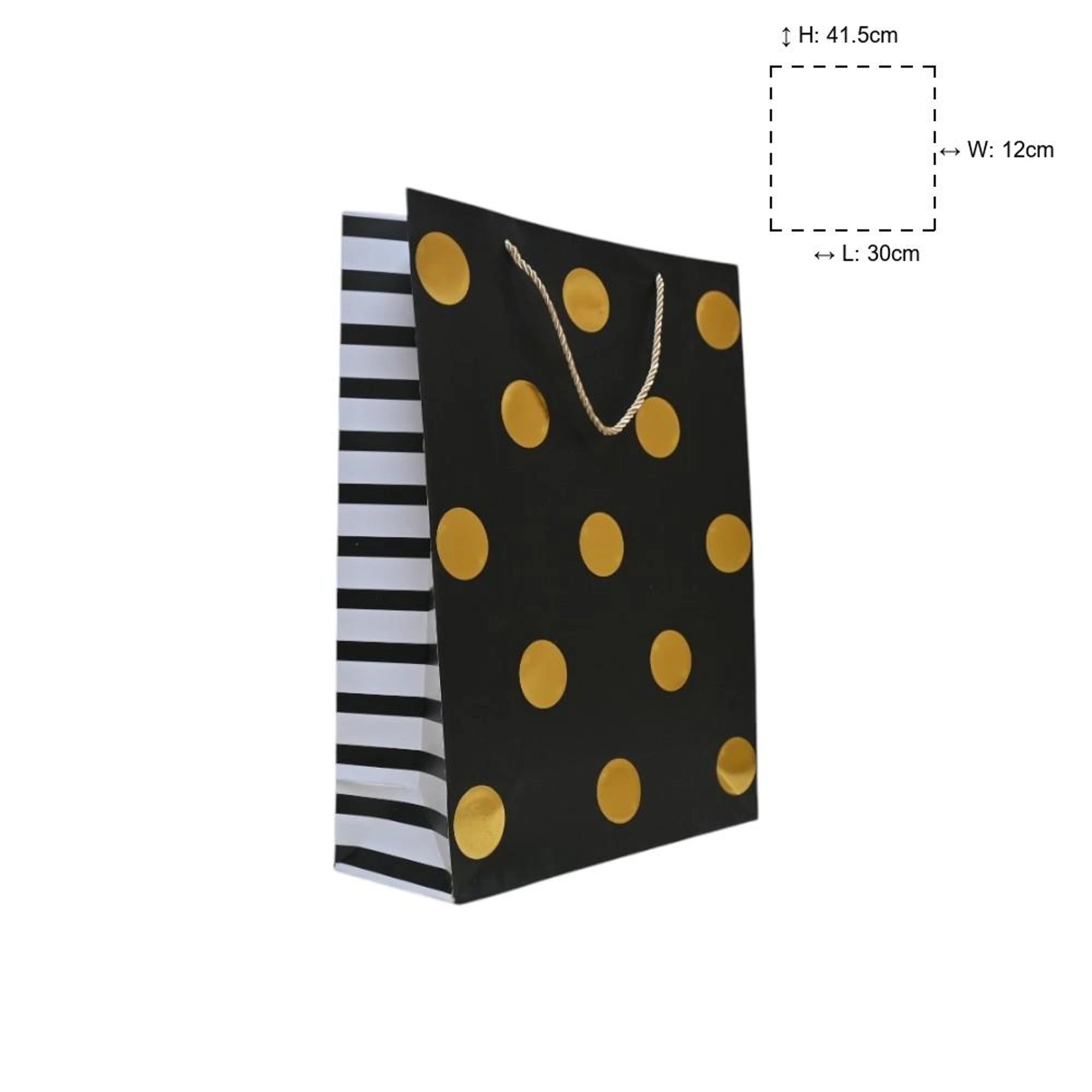 Add a sprinkle of elegance to your next event with these Gold Polka Dotted Black Paper Bags (Set of 6). Perfect for gift-giving or party favors!