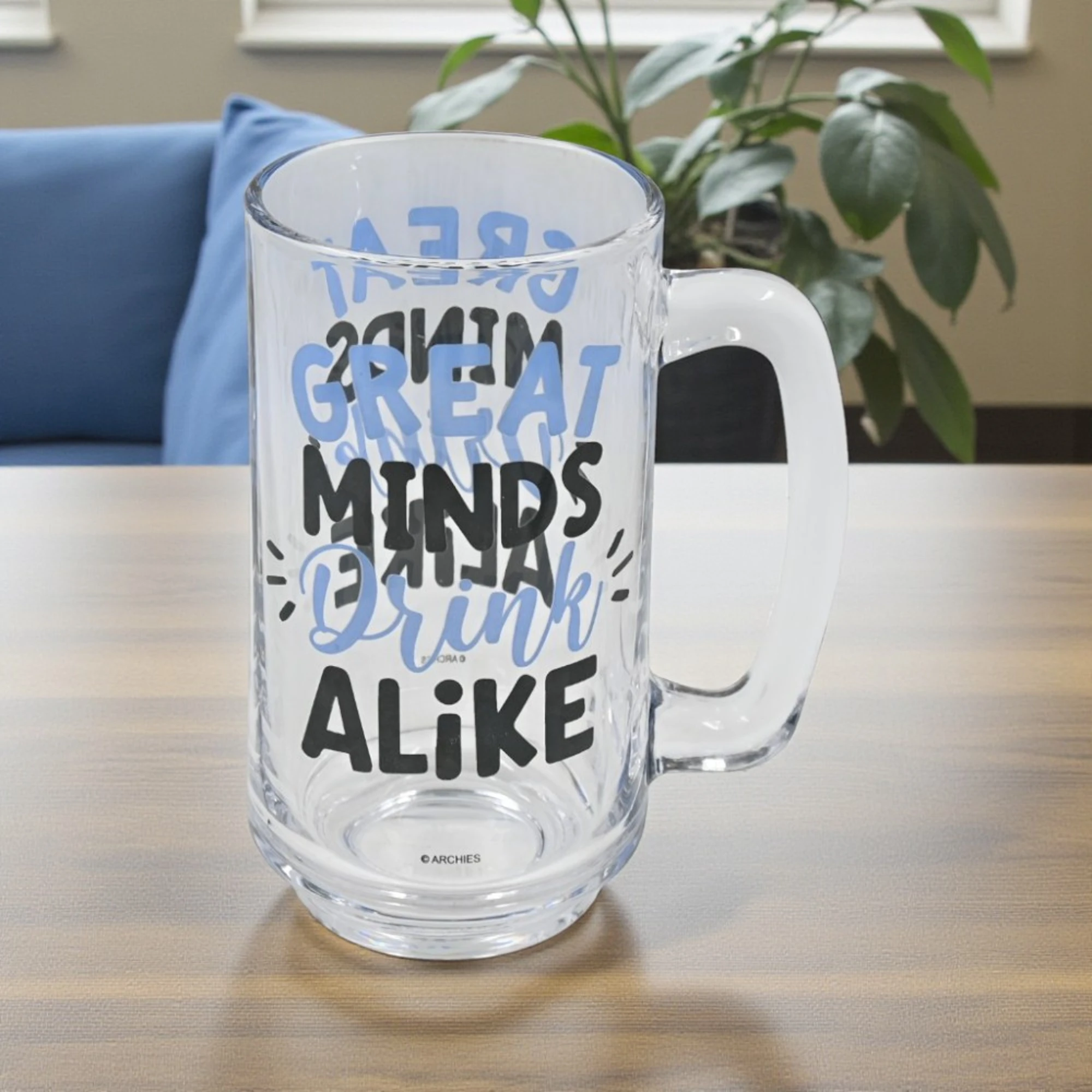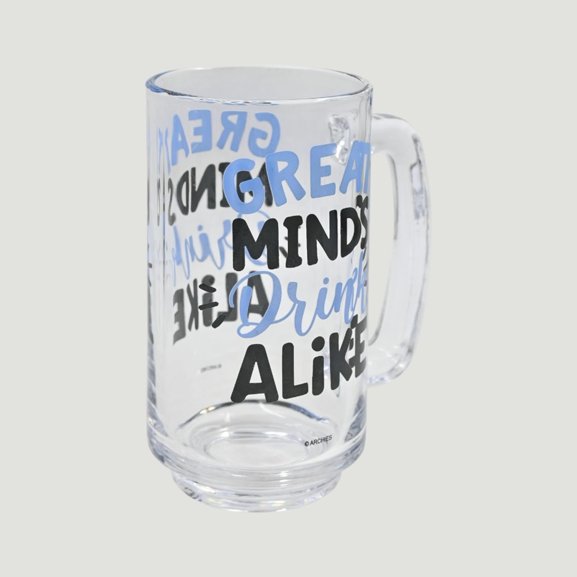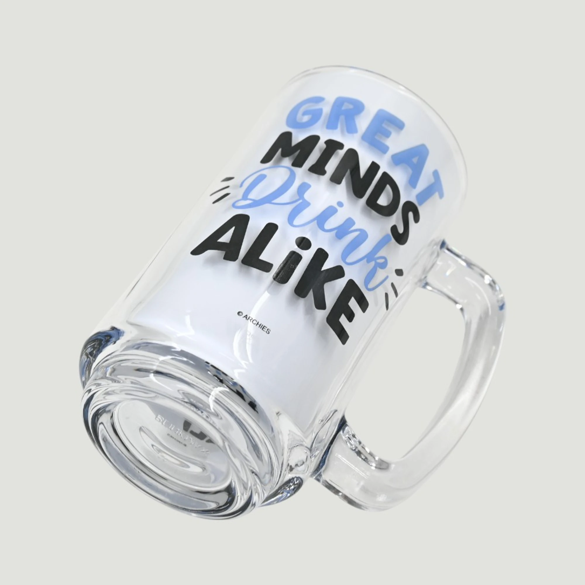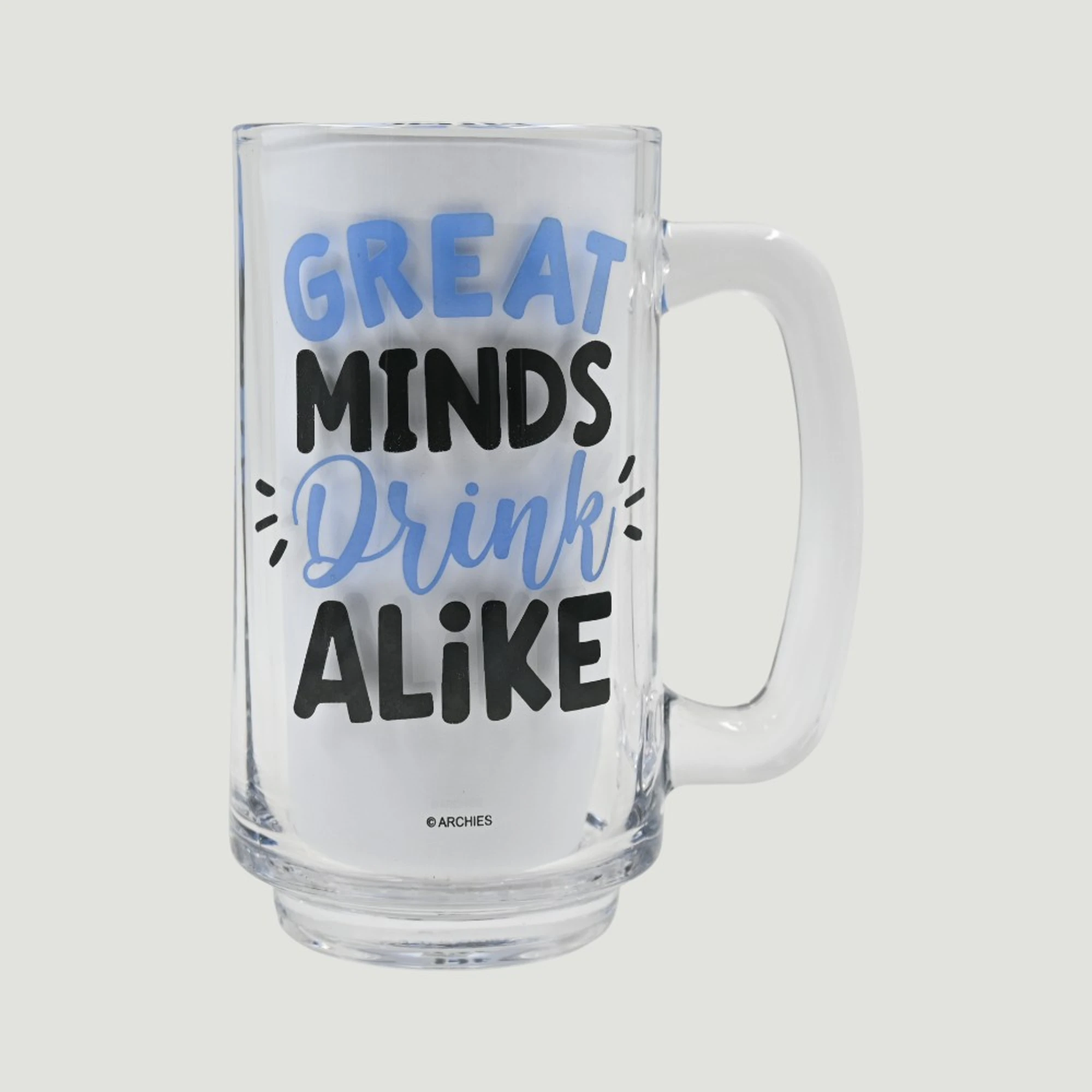 Celebrate friendship and camaraderie with the GREAT MINDS DRINK ALIKE Beer Mug. This delightful mug is perfect for those who appreciate a good laugh and a cold brew. With its sturdy handle and ample capacity, it’s great for sharing good times with friends.
