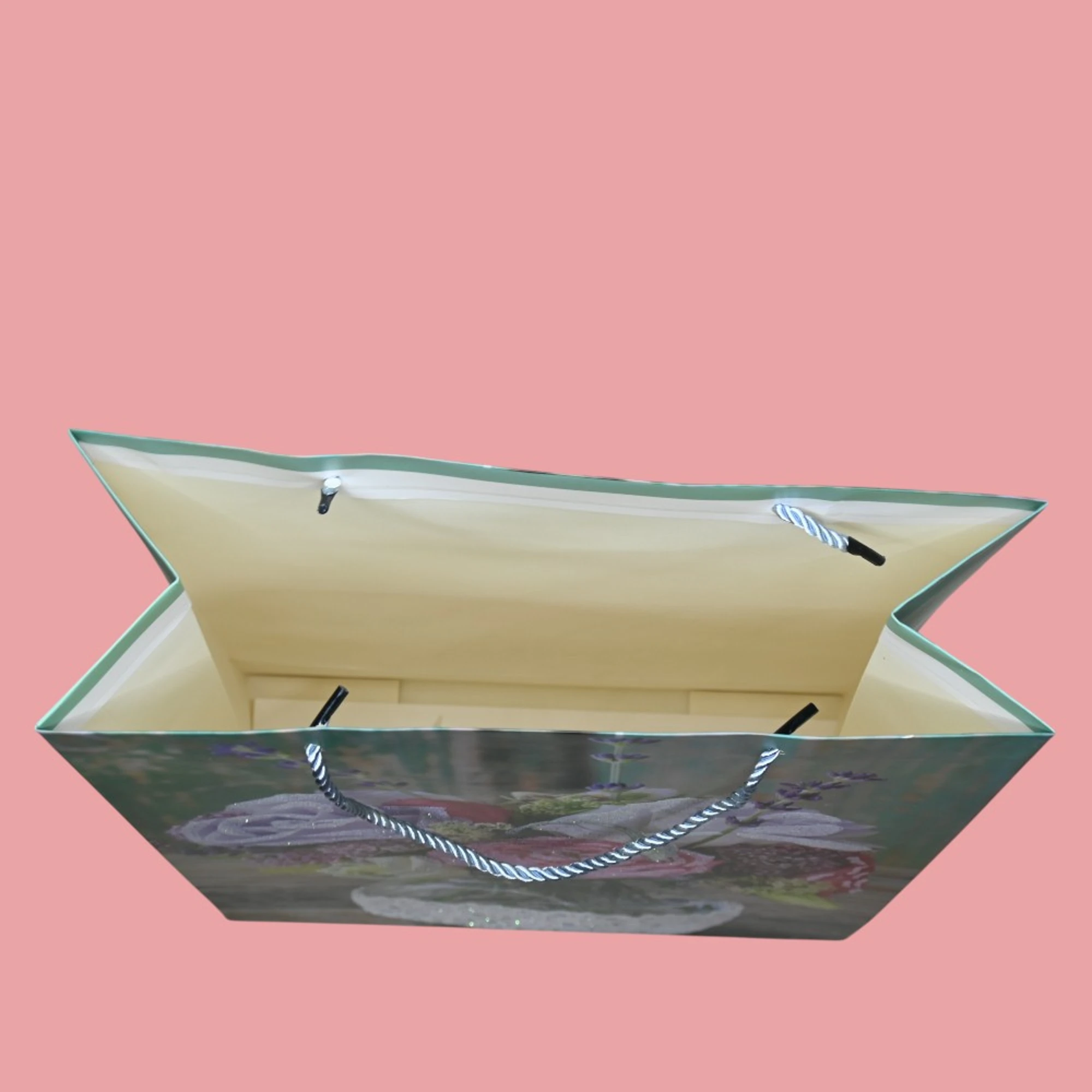 Green Background Roses Paper Bags (Set of 6)