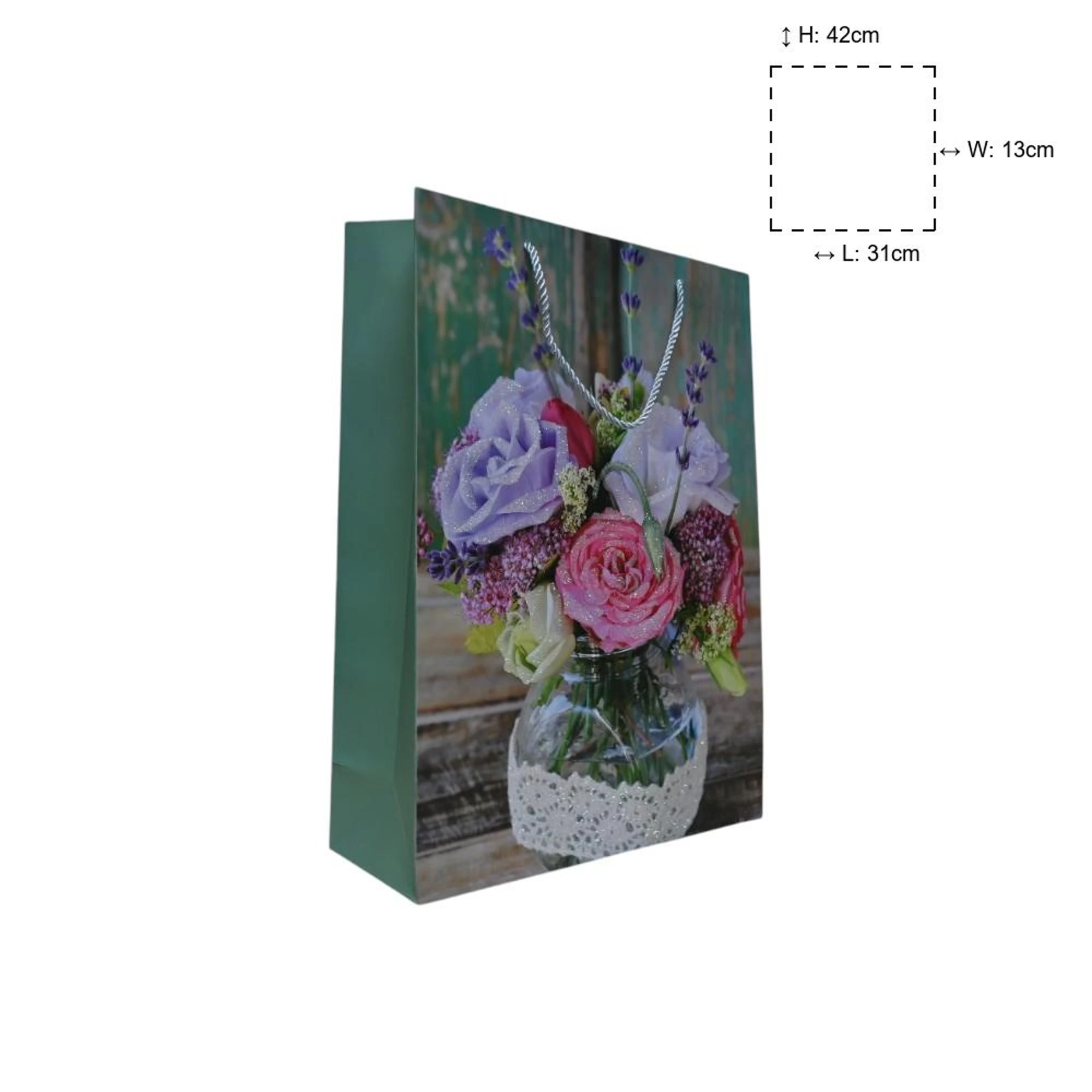 Add a touch of floral elegance to your gifting with these Green Background Roses Paper Bags. Perfectly sized at 30 x 41.5 x 12 cm, these medium bags come in a convenient set of six, allowing you to style multiple presents with ease.