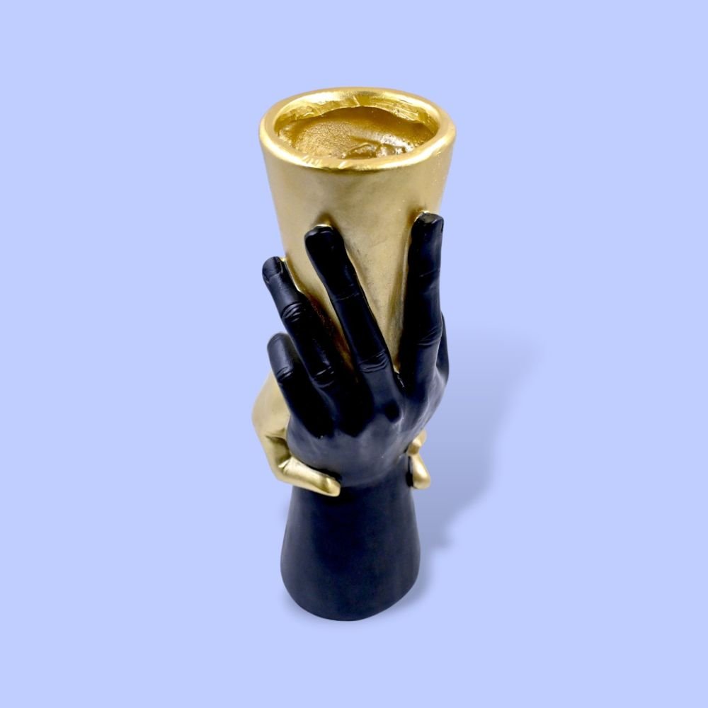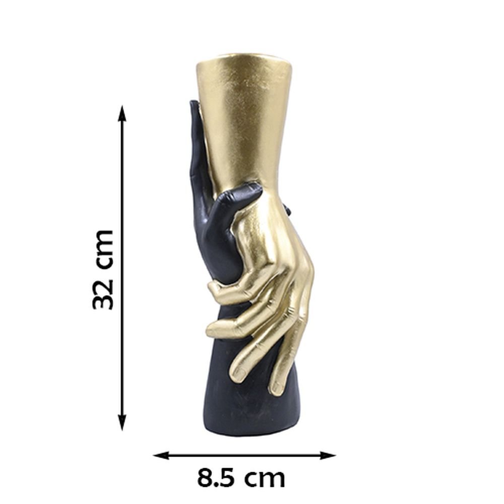 The Holding Hands Gold Black Vase measures the right size for tabletop displays or as a striking floor vase. Its solid construction ensures stability, while the artistic craftsmanship will surely captivate your guests, letting you showcase your flowers or greenery with style and grace.