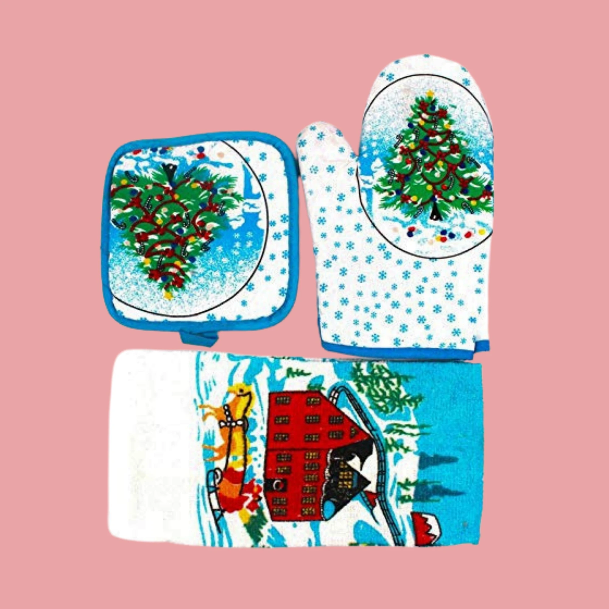 Get your home in the festive spirit with this charming XMAS Towel, Mitten & Coaster Set! Perfect for adding a cozy touch to your kitchen or dining room, this set is both practical and stylish.