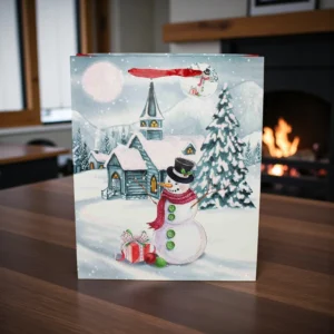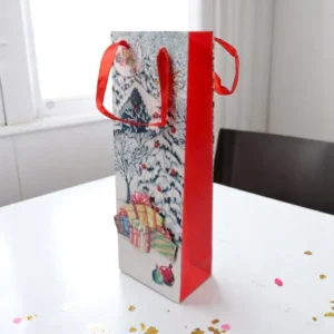 Bring joy to your holiday celebrations with this delightful gift bag featuring a cheerful Santa Claus surrounded by sparkling snowflakes and festive decorations. The bag’s vibrant colors and glittery accents create a magical holiday atmosphere, while the sturdy red ribbon handles provide easy carrying. Perfect for wrapping up special presents, this gift bag adds an extra touch of enchantment to your Christmas festivities.