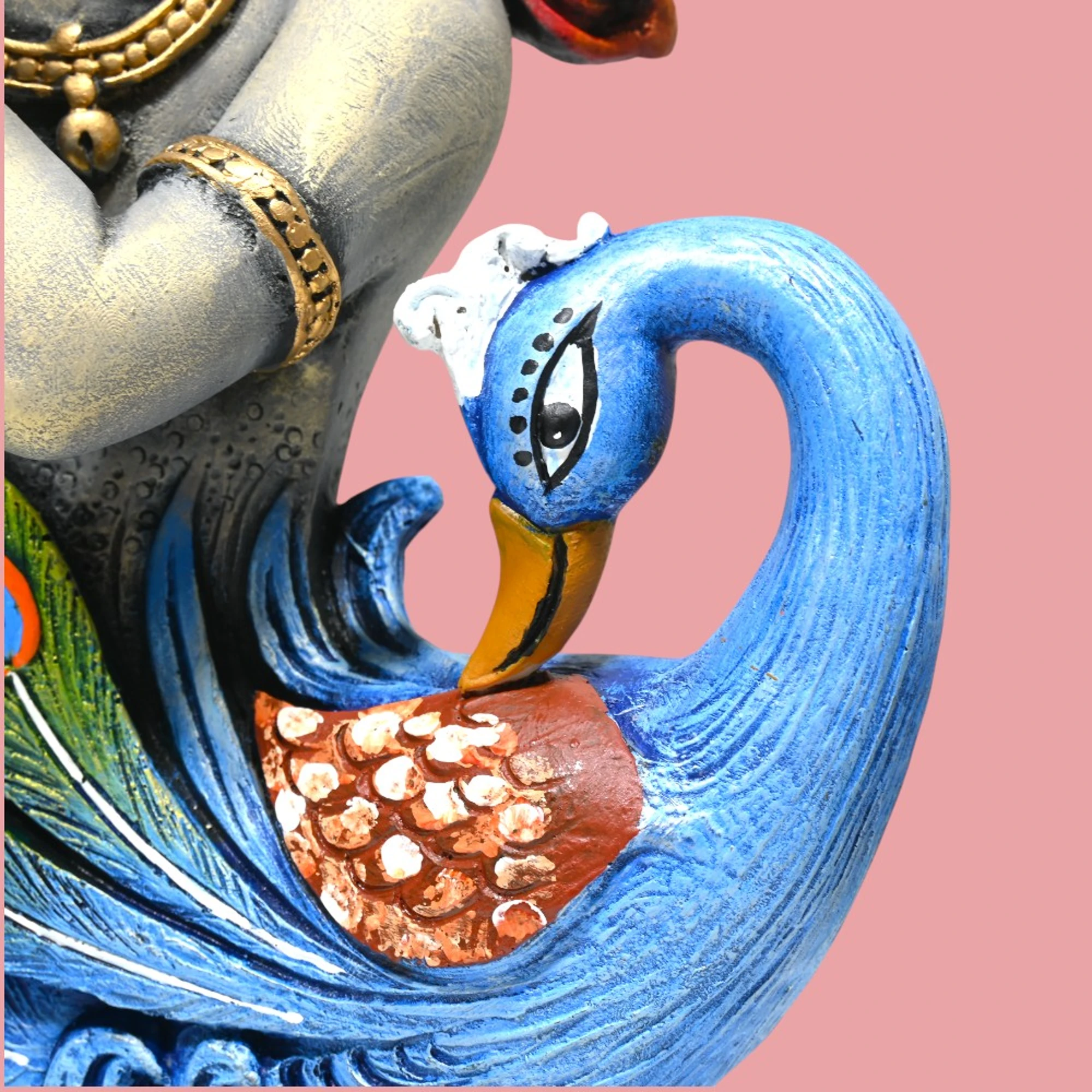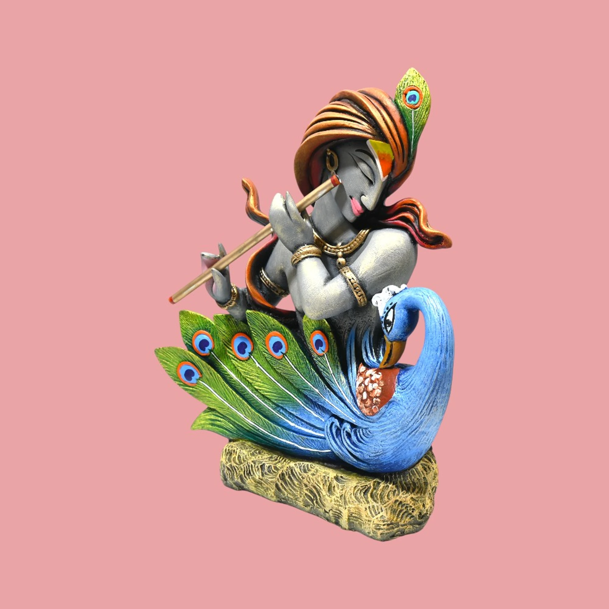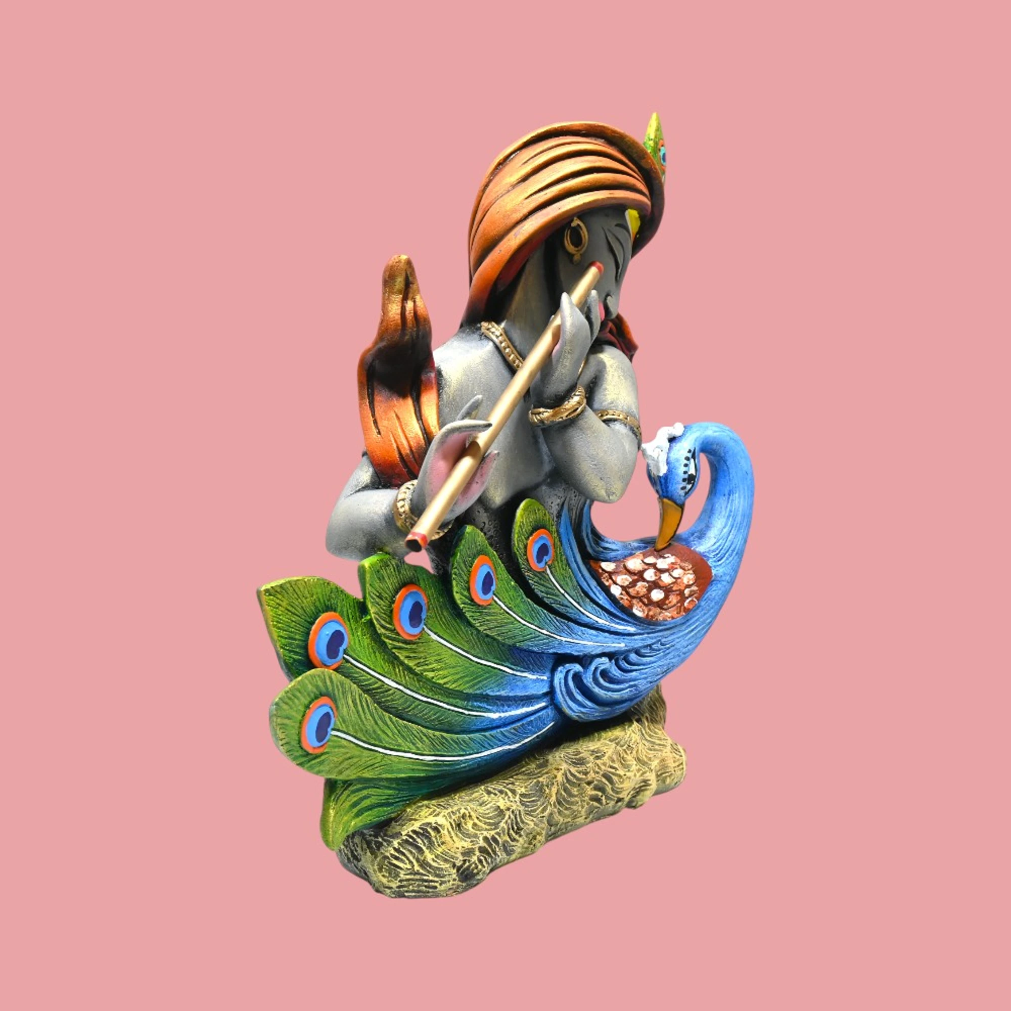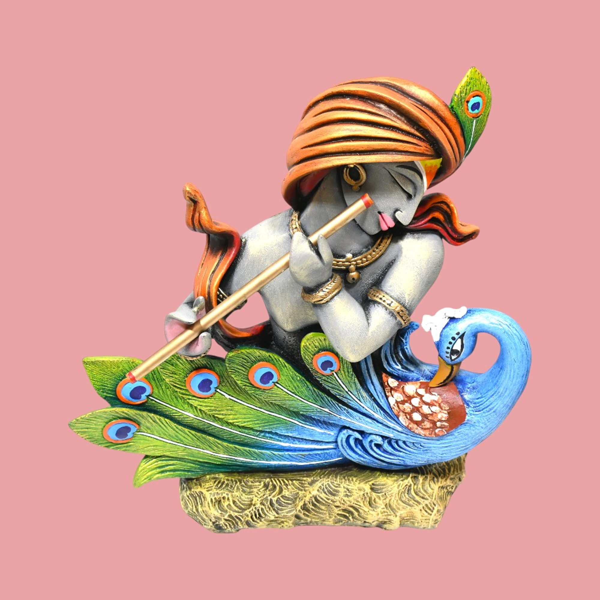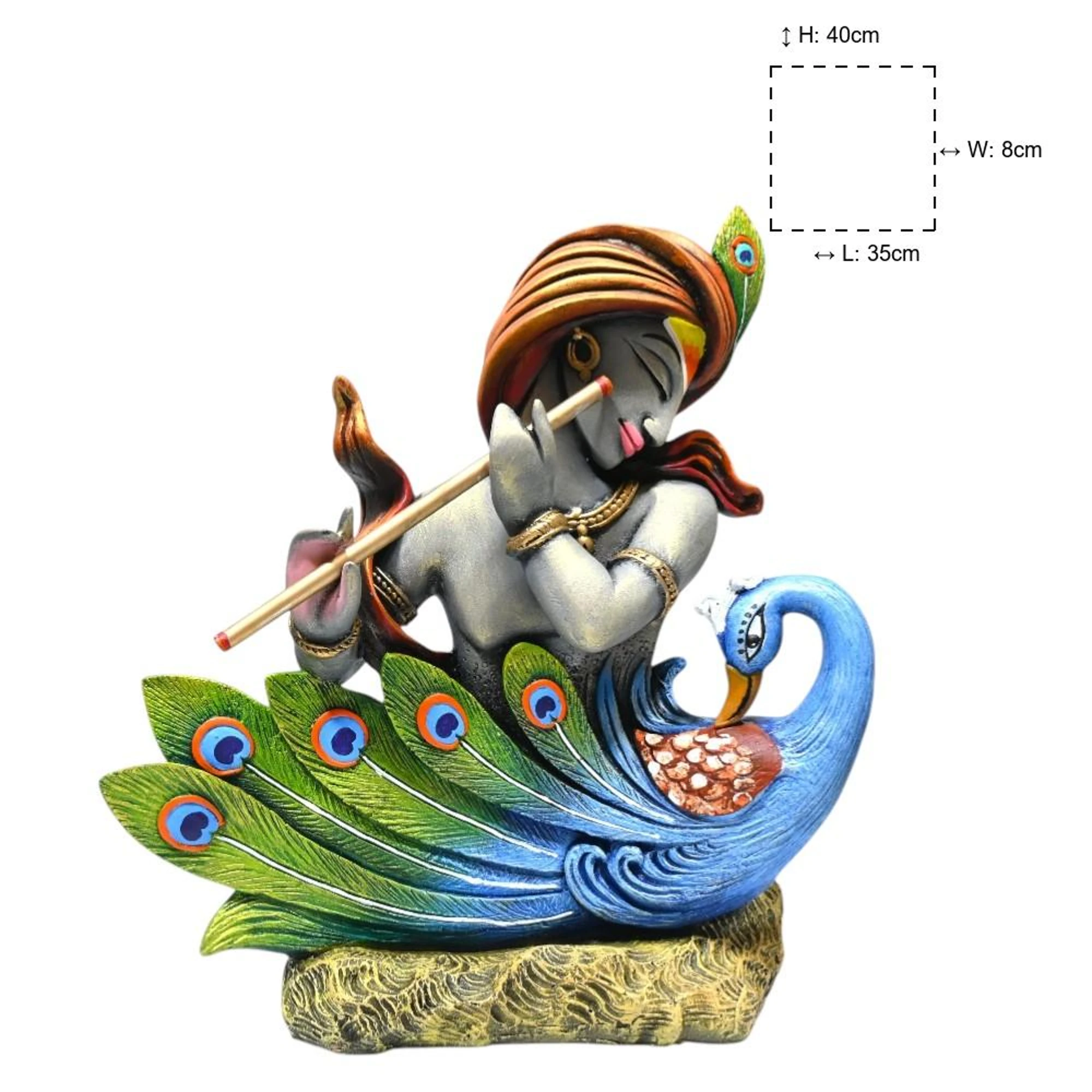 Let the divine presence of Lord Krishna, paired with the graceful beauty of the peacock, transform your living space into a serene sanctuary. Celebrate artistry, spirituality, and tradition all in one magnificent piece. Enrich your home with this captivating KRISHNA WITH PEACOCK FIGURINE BIG.