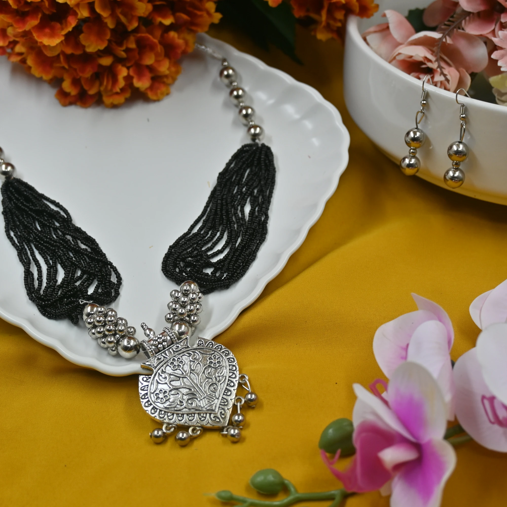 – Matching Set: Includes coordinating earrings for a complete look.