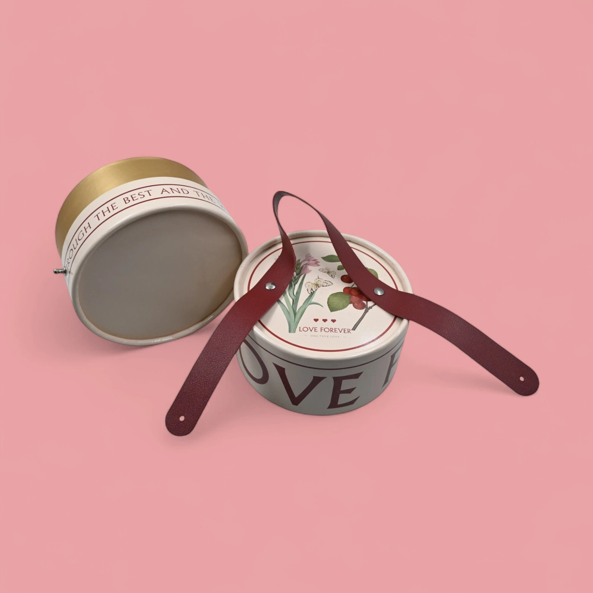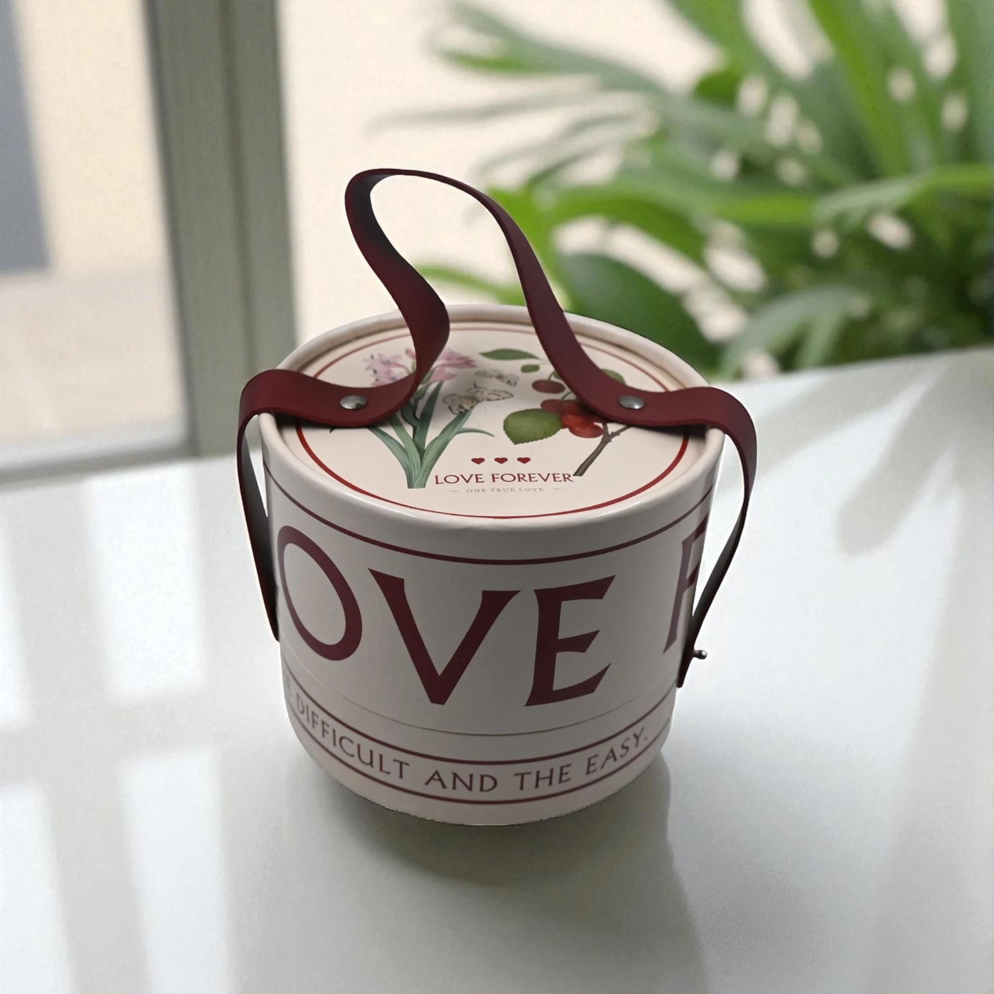 Dress up your special gifts with the LOVE FOREVER RD Leather Handle Gift Box Small. This charming gift box is designed to add a touch of elegance to any occasion.