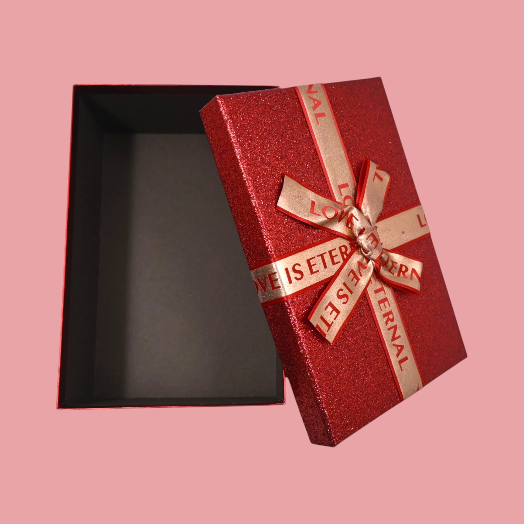 Wrap your precious gifts in a touch of magic with the LOVE IS ETERNAL Glitter Rect Gift Box. This large, dazzling box is perfect for those special occasions calling for a little sparkle and elegance.