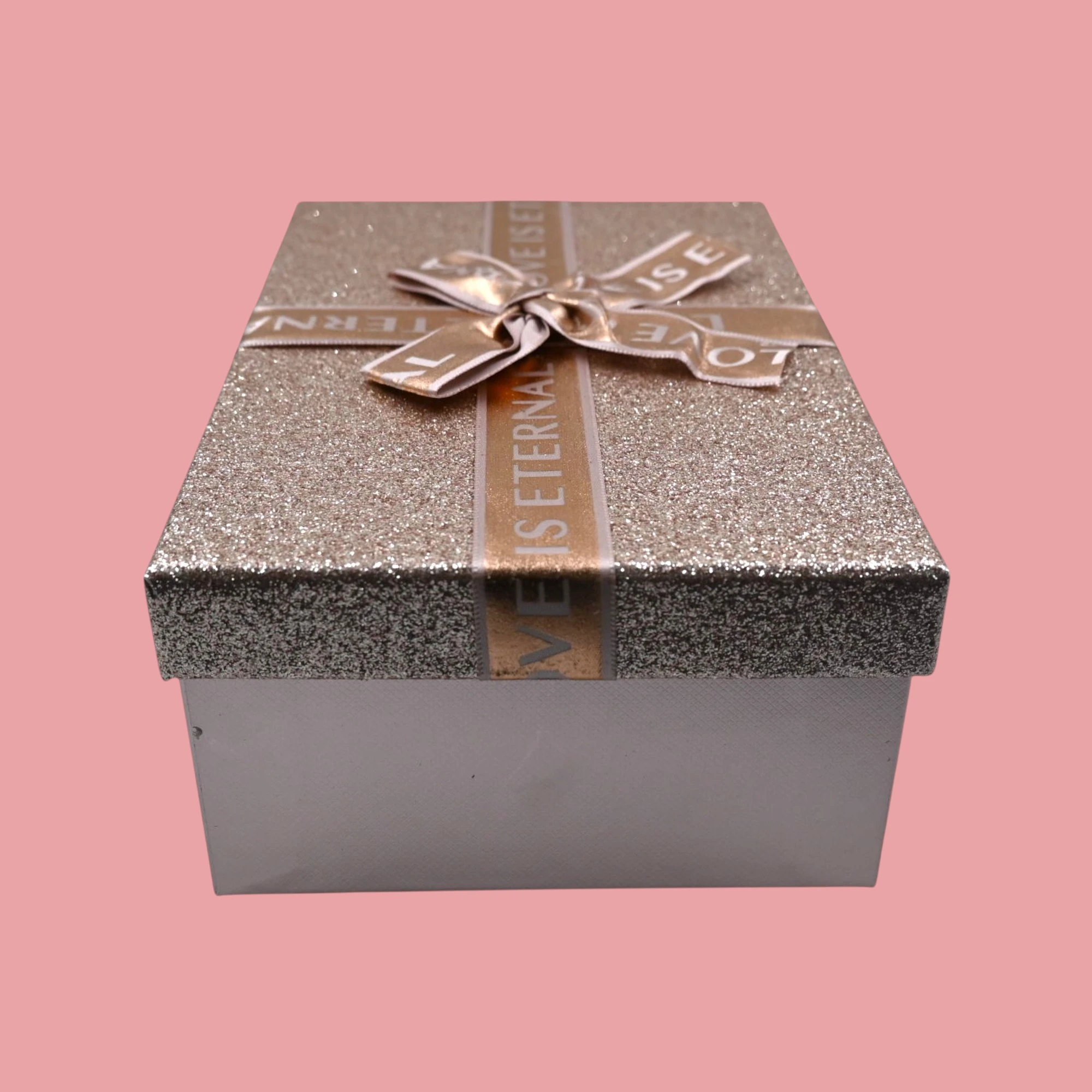 Make every gift extra special with the LOVE IS ETERNAL Glitter Rect Gift Box in medium size!