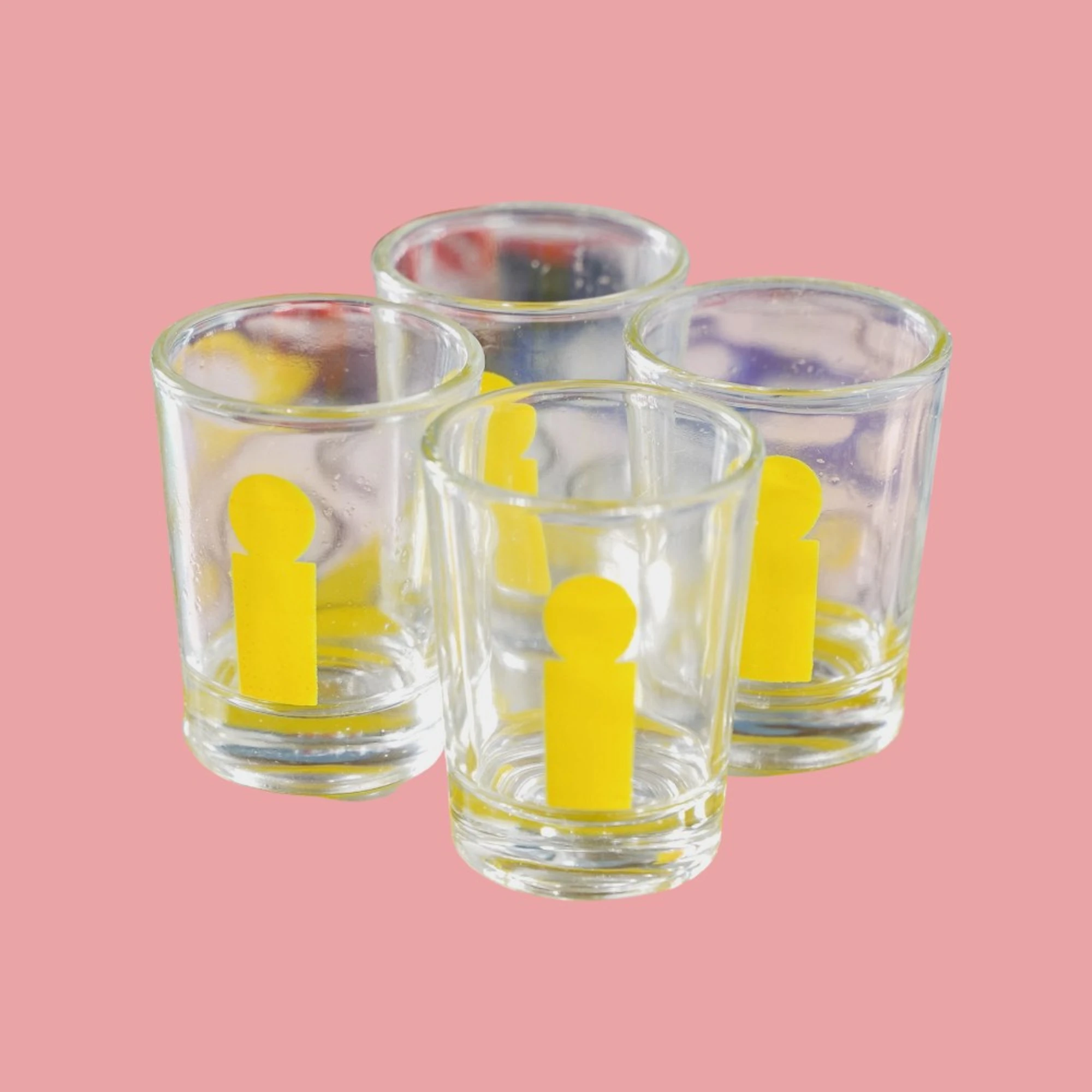 – Includes shot glasses with colorful designs