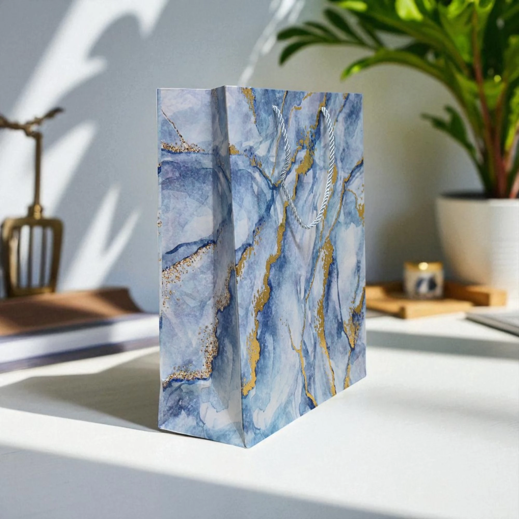Marble Effect Blue Paper Bags (Set of 6)