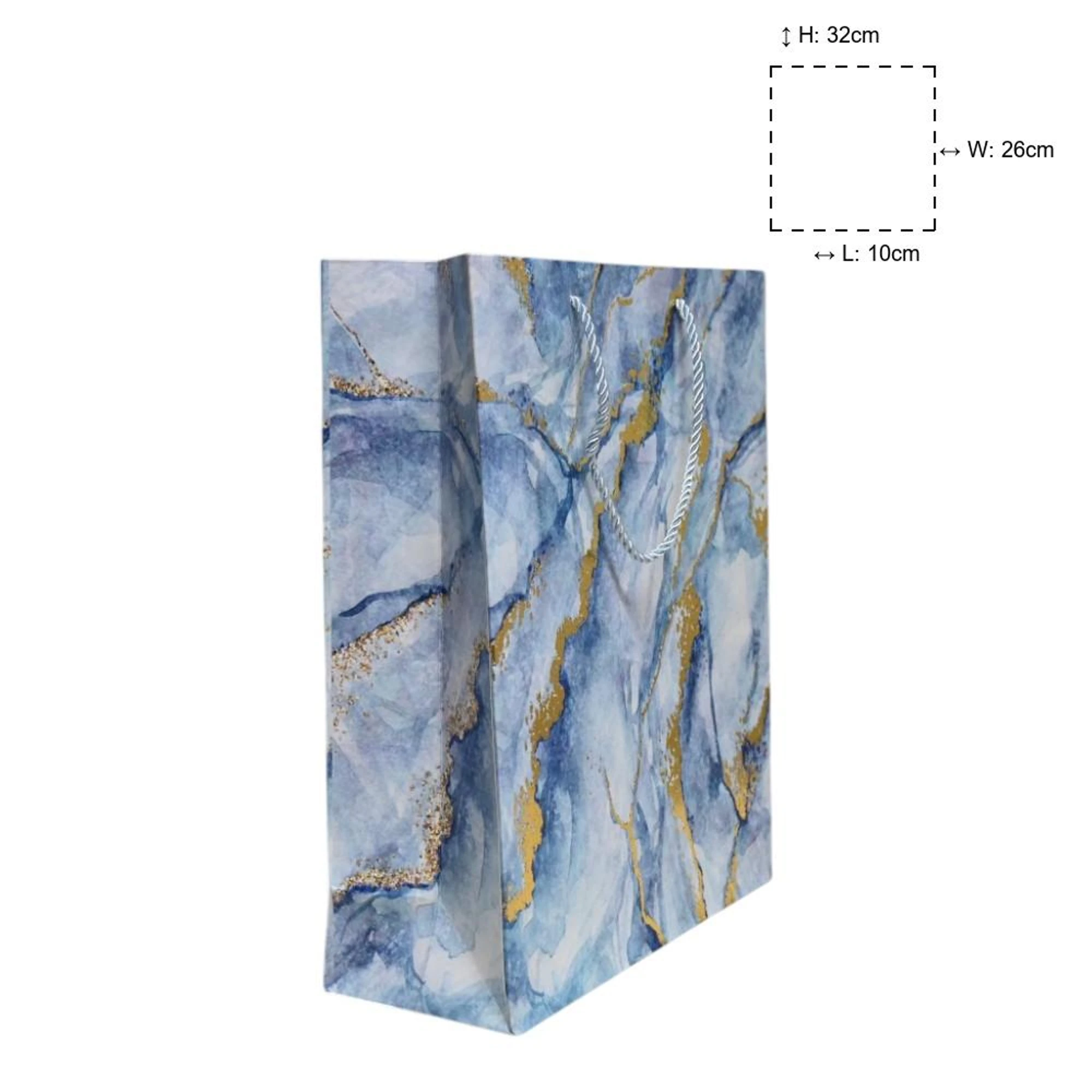 Get ready to impress with our Marble Effect Blue Paper Bags as the perfect blend of elegance and functionality! These small yet sturdy bags, measuring 26 x 32 x 10, are just right for any occasion, from gift-giving to party favors.