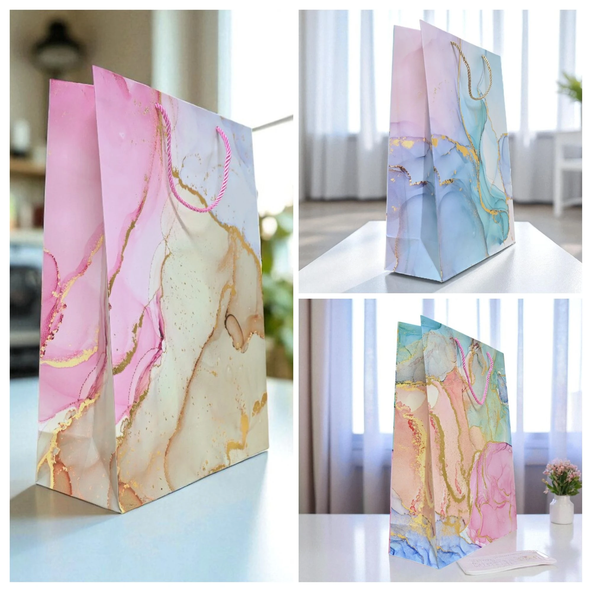 Add a touch of elegance to any occasion with our stunning Marble Effect Paper Bags. Perfectly sized at 30×41.5×12 cm, these medium bags are ideal for gifts, party favors, or any special event.